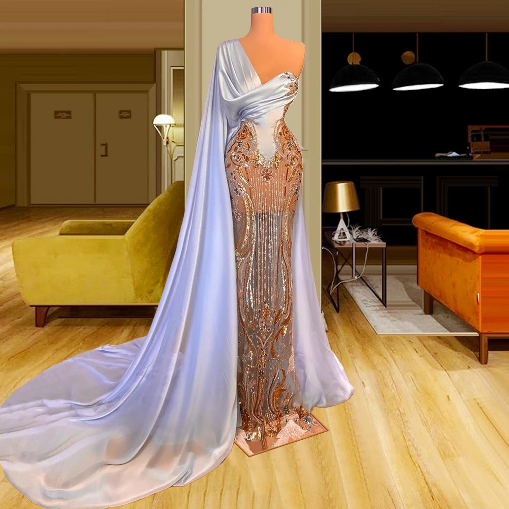 Сексуальные вечерние платья с юбкой-годе на одно плечо в нигерийско...
