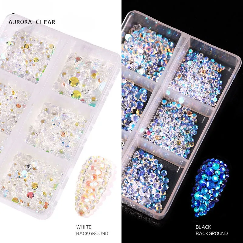6 ячеек кристалл AB Стекло ногти Стразы смешанные Размеры 3D голови...