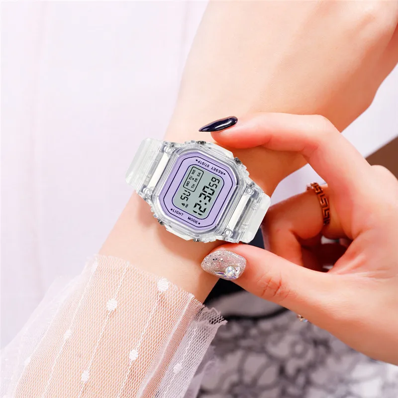 Прозрачные Цифровые часы, квадратные женские часы, спортивные элект...