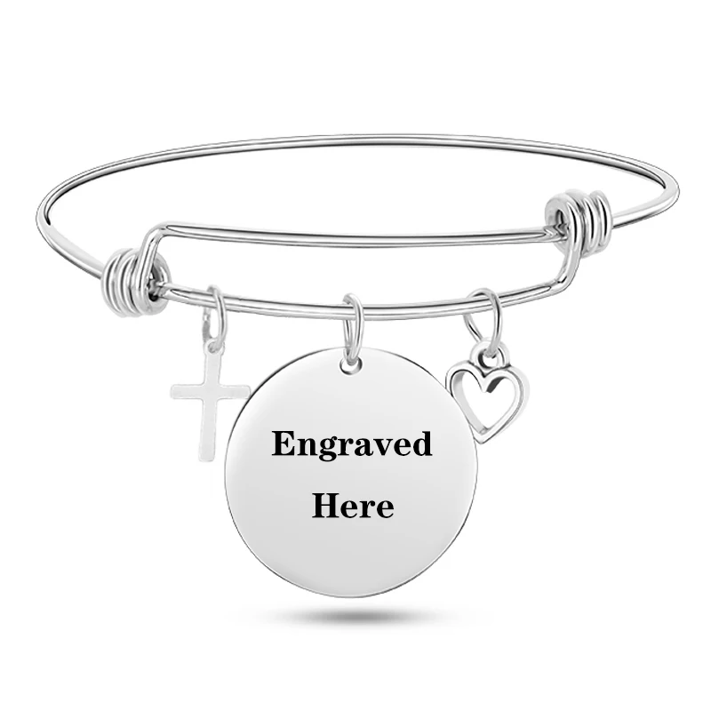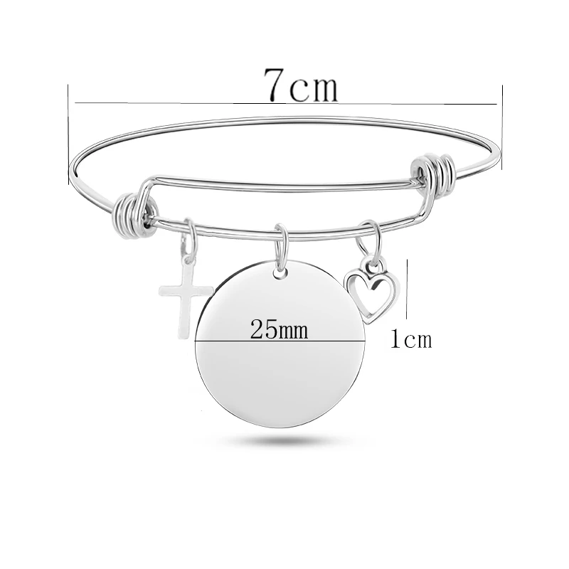 Персонализированные Выгравированные браслеты из нержавеющей стали браслет Крест Сердце амулеты регулируемые браслеты для женщин на заказ ювелирные изделия