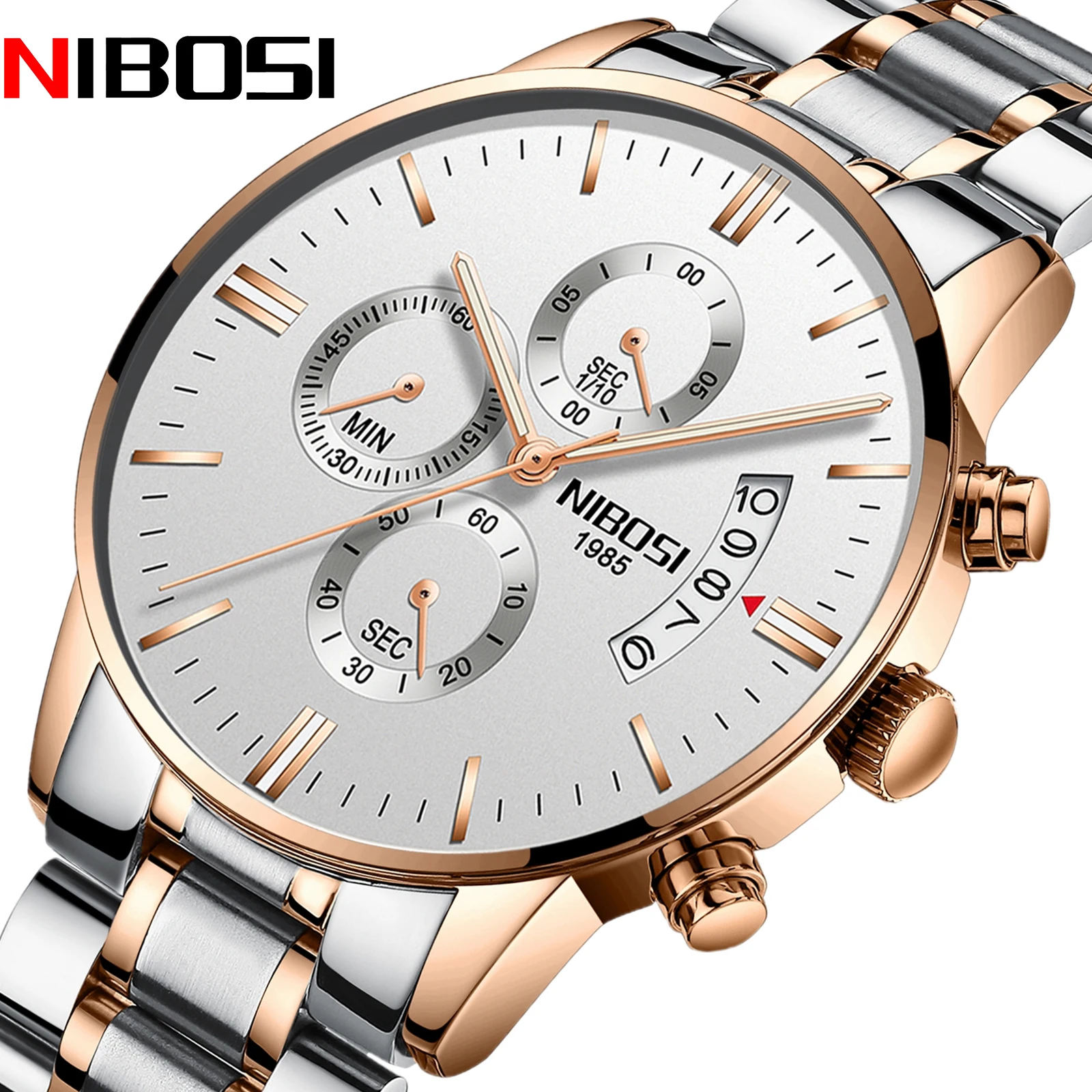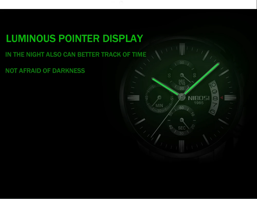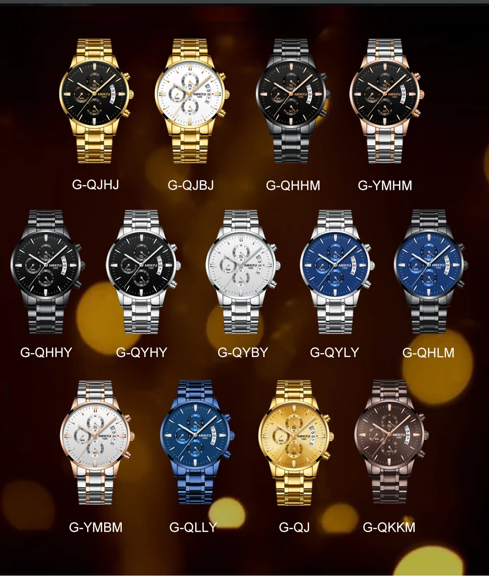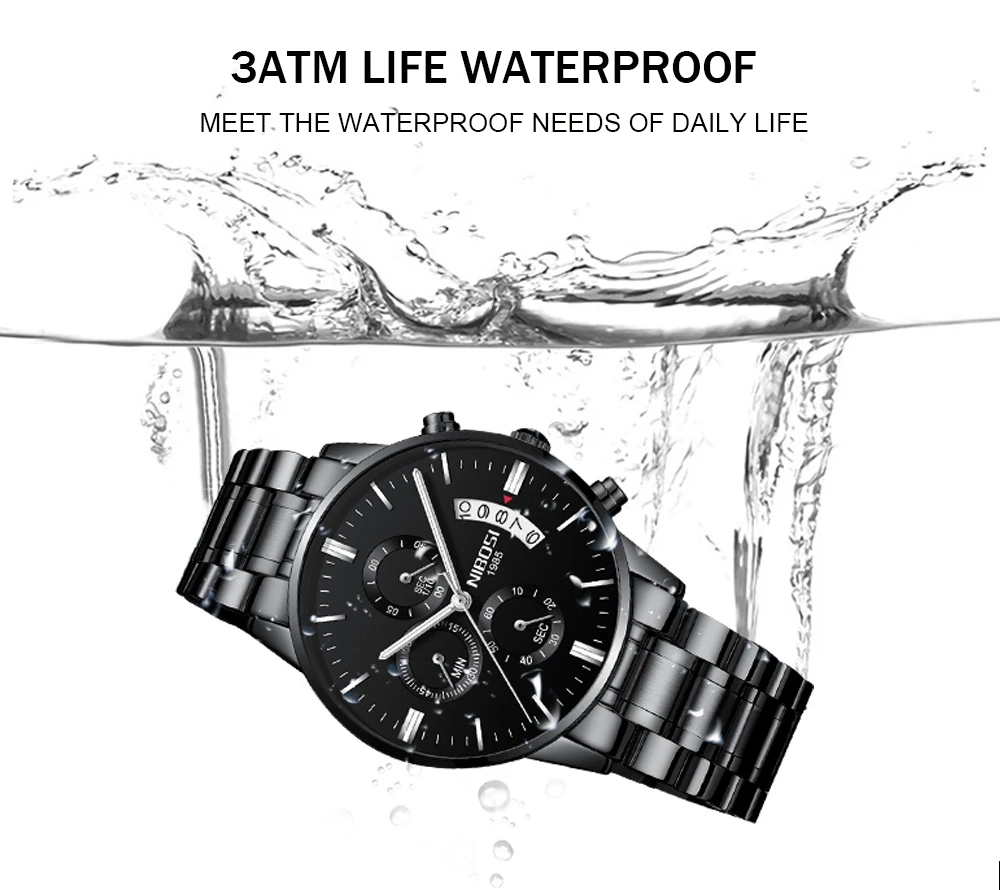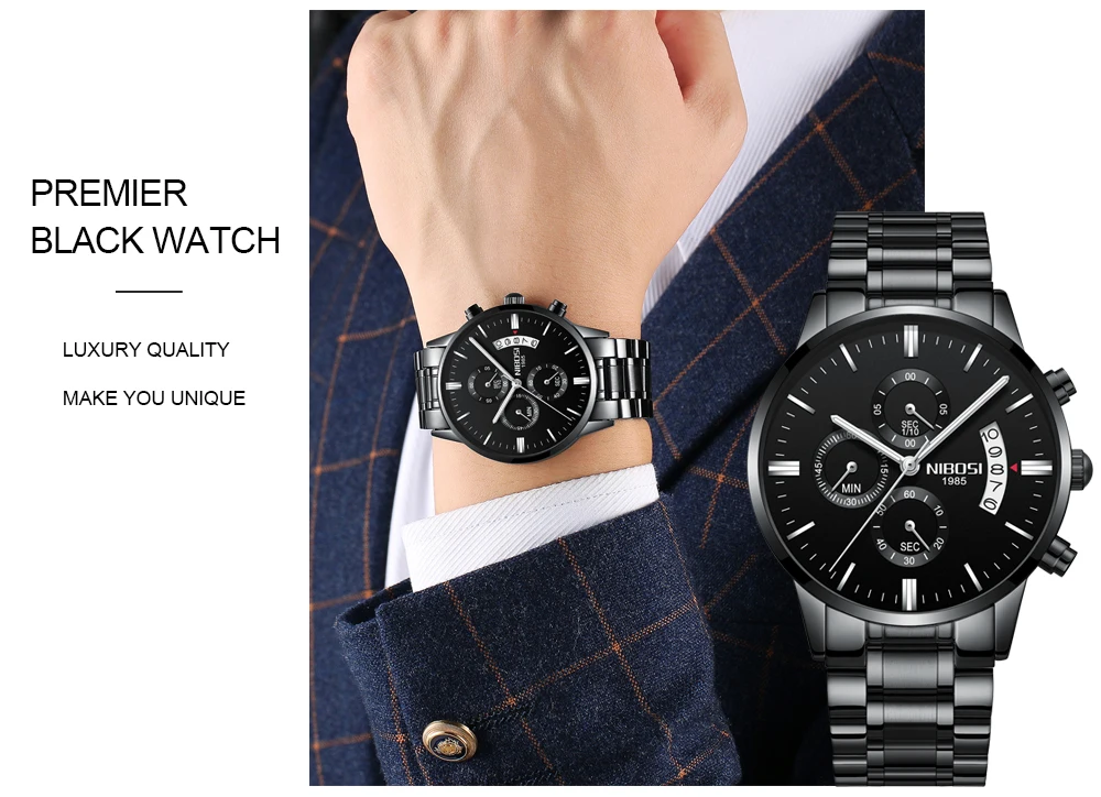 Часы наручные NIBOSI Мужские кварцевые, брендовые Роскошные спортивные водонепроницаемые Модные с хронографом из нержавеющей стали