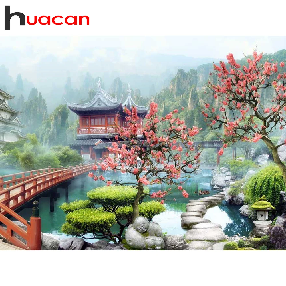 Алмазная 5d Вышивка Huacan, полноразмернаякруглая мозаика, пейзаж, природа, цветок, сделай сам, украшение на стену, подарок
