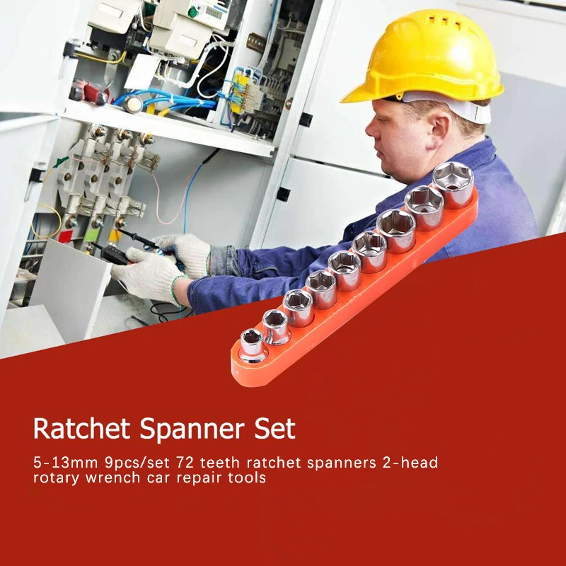 Особенности:1.Гибкий универсальный удлинитель отвертки, подходит для установки в небольшом пространстве, установки винтов или удаления винтов.2-13 мм 9 шт./компл. 72 зубцов мини рукав пакетный Трещоточный ключ, высокая твердость, высокий крутящий момент, прочный и прочный, без зубьев и без скольжения.Посылка: