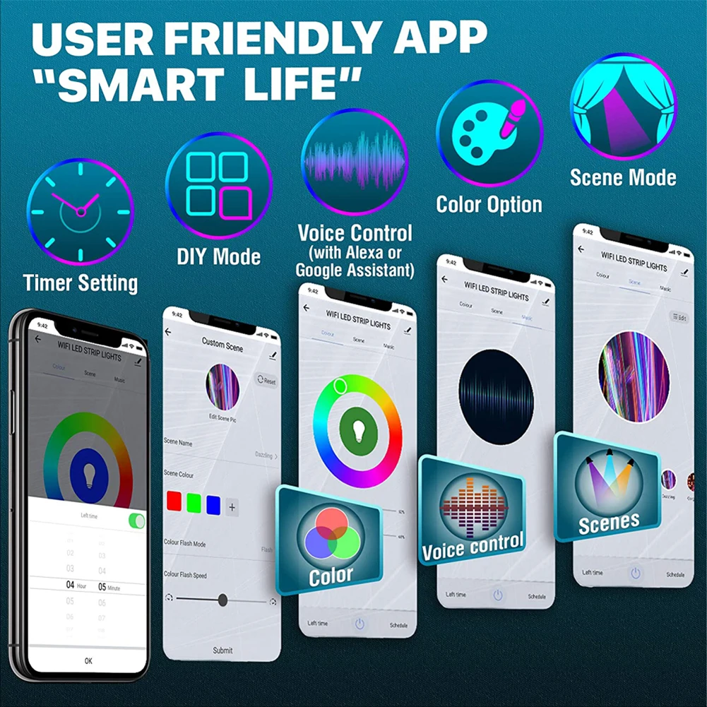 Угловой торшер с управлением через приложение Wi-Fi, меняющий цвет ...