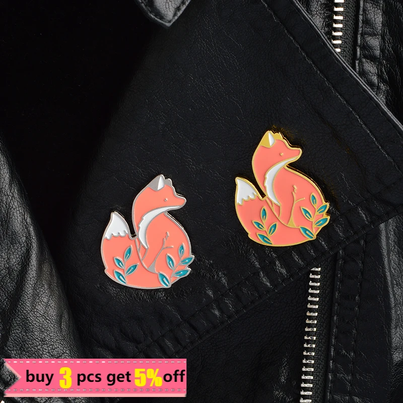 Эмалированная брошь в виде лисы золотого и серебряного цвета, джинс...