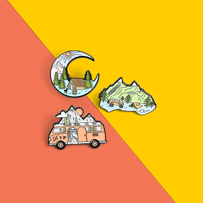 Походите на кемпинг! Броши с природными булавками в стиле приключений Значки для кемпинга в горах Луна Дерево Луна река автобус броши для Explorer
