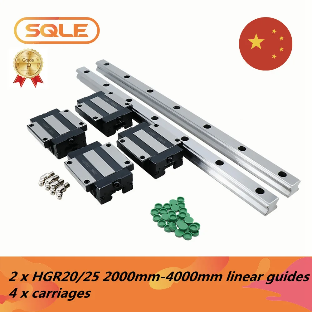Линейные направляющие 2 шт., 2000-4000 мм, линейные рельсы HGR20 HGR25, прикрепленные рельсы + 4 шт., направляющие HGH25CA HGH20CA для фрезерного станка с ЧПУ