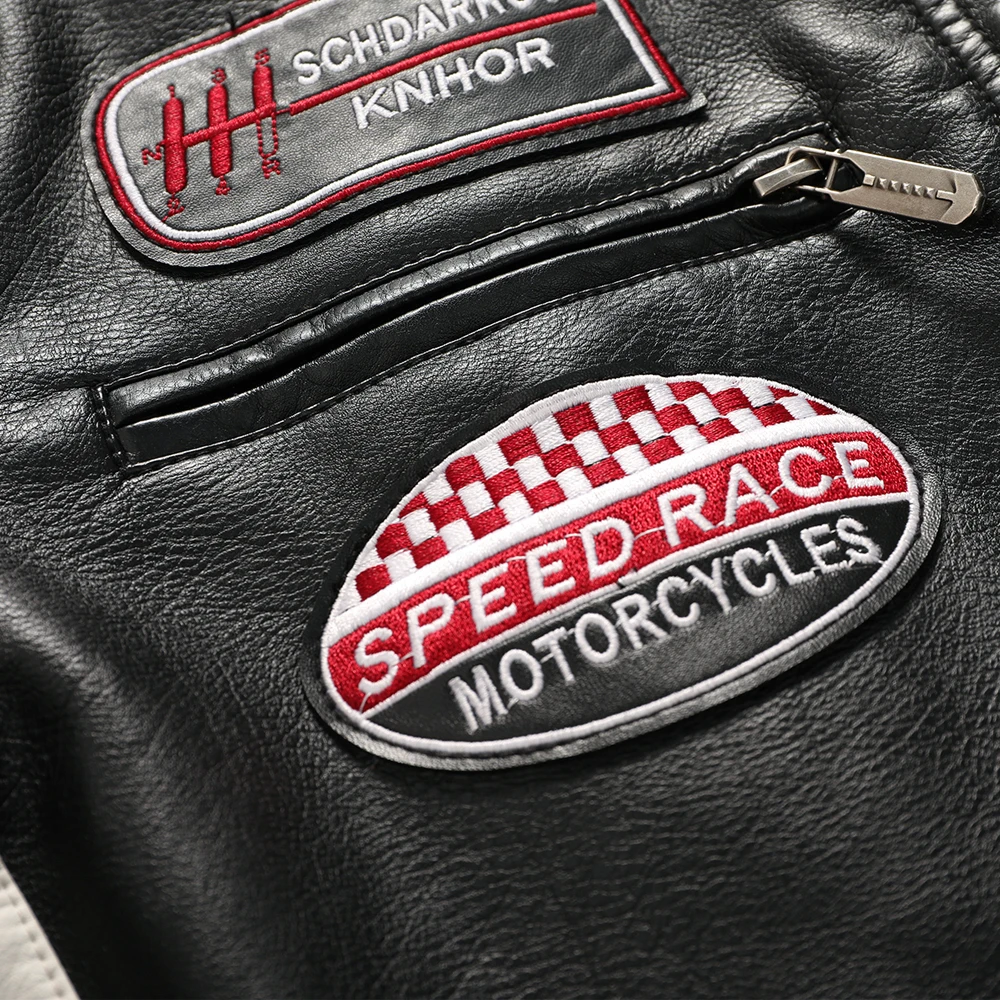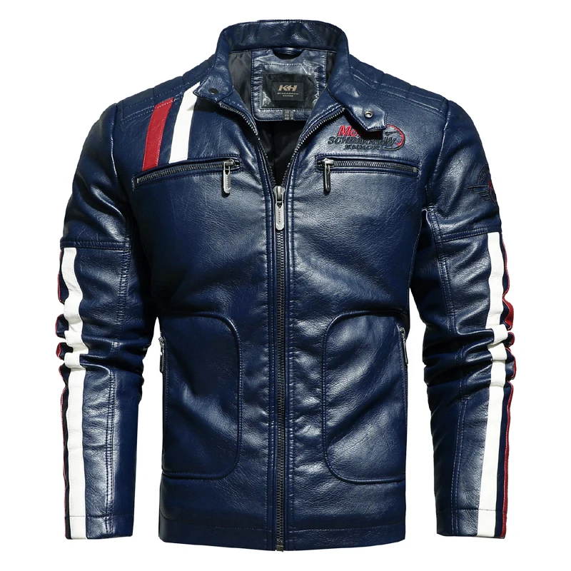 Мужская Байкерская кожаная куртка, куртка-бомбер с вышивкой и эполетами, пальто из искусственной кожи, 2021