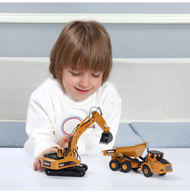 Самосвал-экскаватор HUINA 1:50, колесный погрузчик, Литые металлические модели, строительные машины, игрушки для мальчиков, подарок на день рождения, коллекция автомобилей