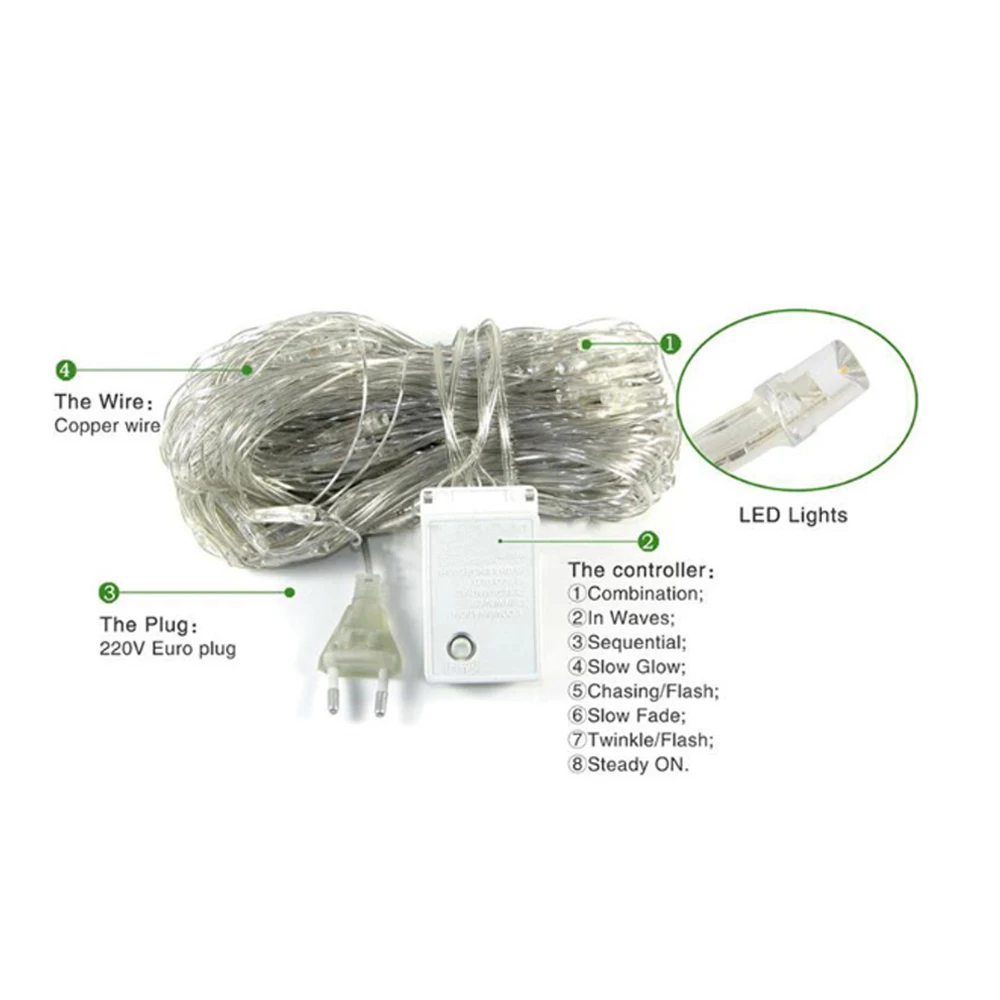 1,5*1,5 м 3 м x 2 м 6*4 м EU220V светодиодная рыболовная сетка легкая гирлянда чистая Гирлянда для рождественской вечеринки свадьбы наружное украшение потолок