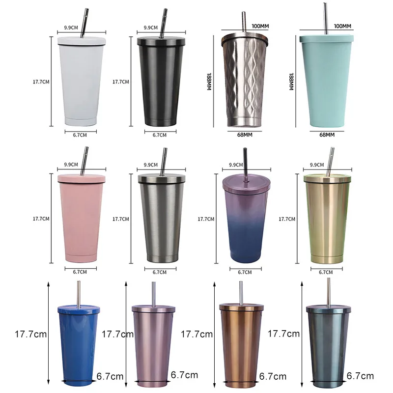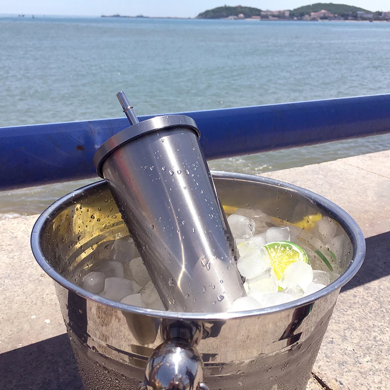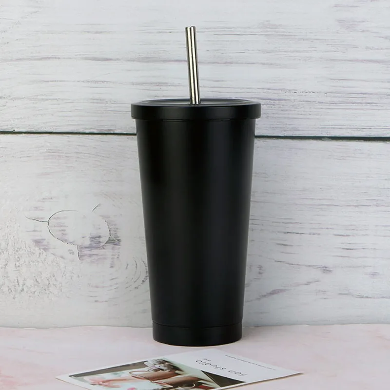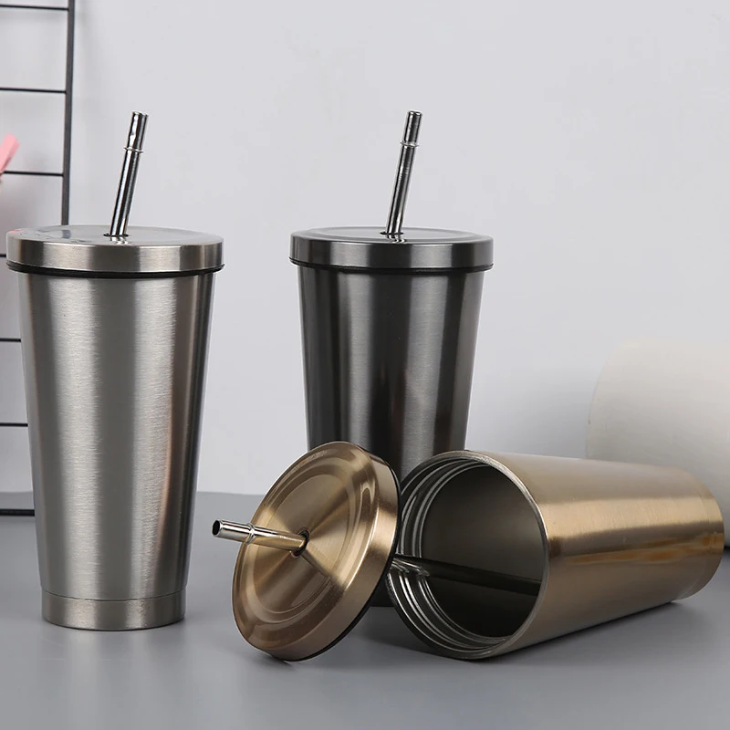 Стакан из нержавеющей стали с соломинкой, термос, питьевая чашка, бутылка для кофе, молока, воды, многоразовая фляжка, металлическая чашка, соломенные дорожные чашки