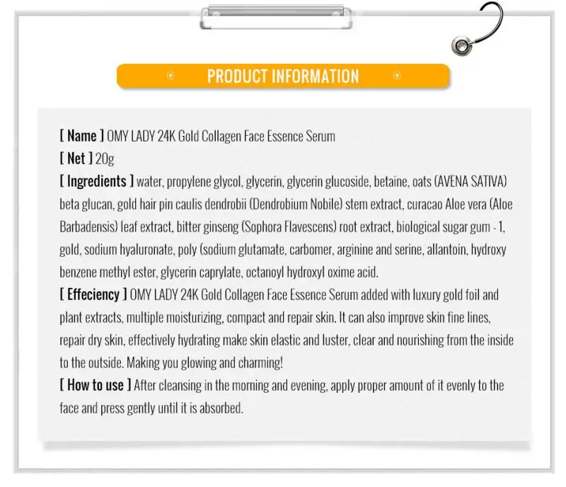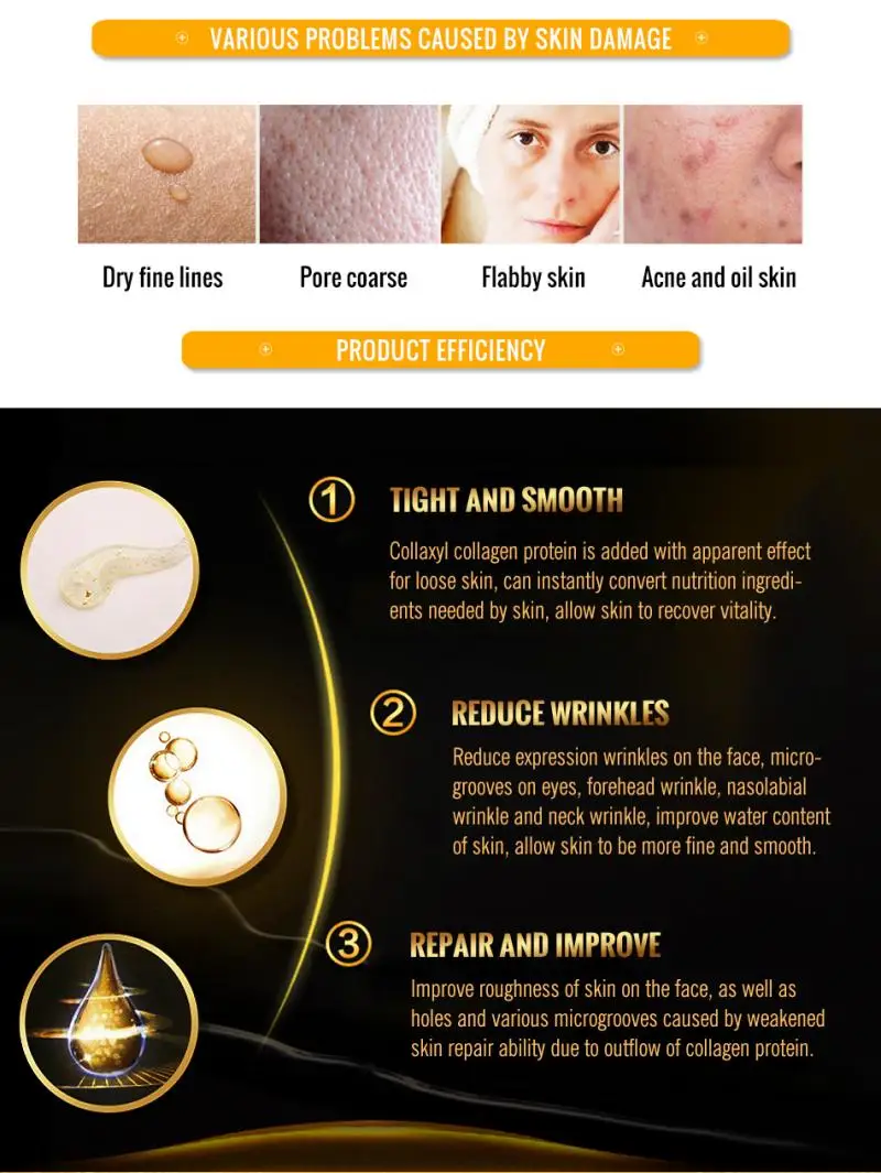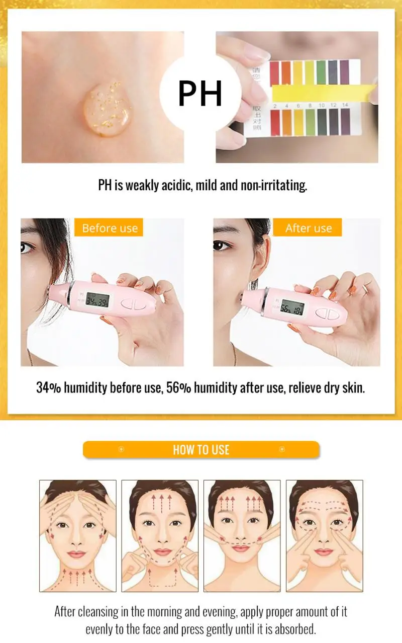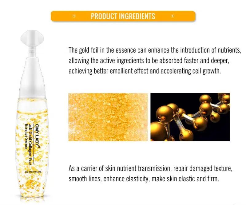 OMY LADY Новый покрытыем цвета чистого 24 каратного золота уход за кожей лица Гиалуроновая коллаген Сыворотки пополнения увлажняют сокращает поры, осветляет, забота о коже, 20 г