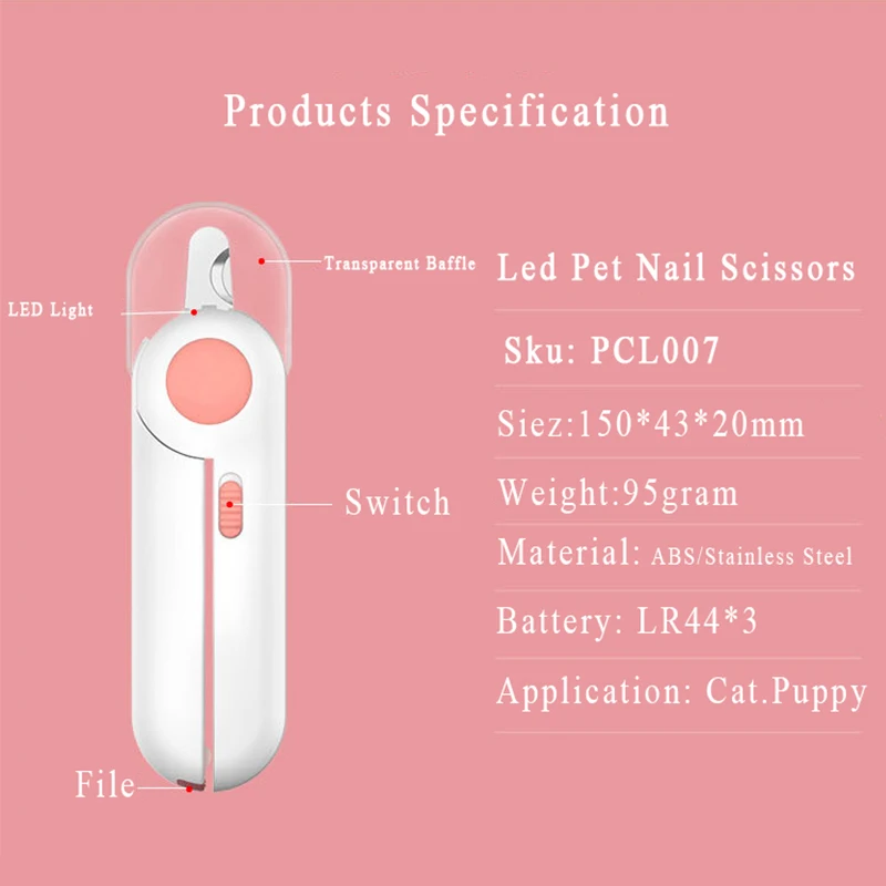 Pet кусачки для ногтей Ножницы Профессиональный светодиодный безопа...