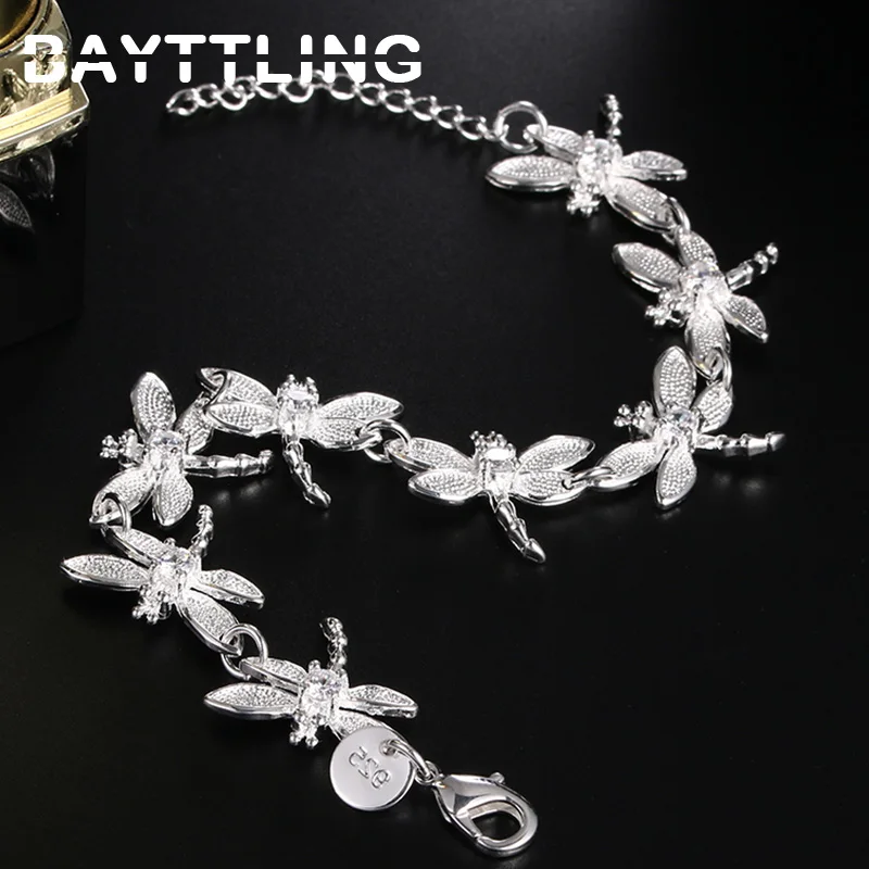 Браслет BAYTTLING из серебра 925 пробы, 8 дюймов, изысканный браслет со стрекозой для женщин и мужчин, модные свадебные украшения, подарки