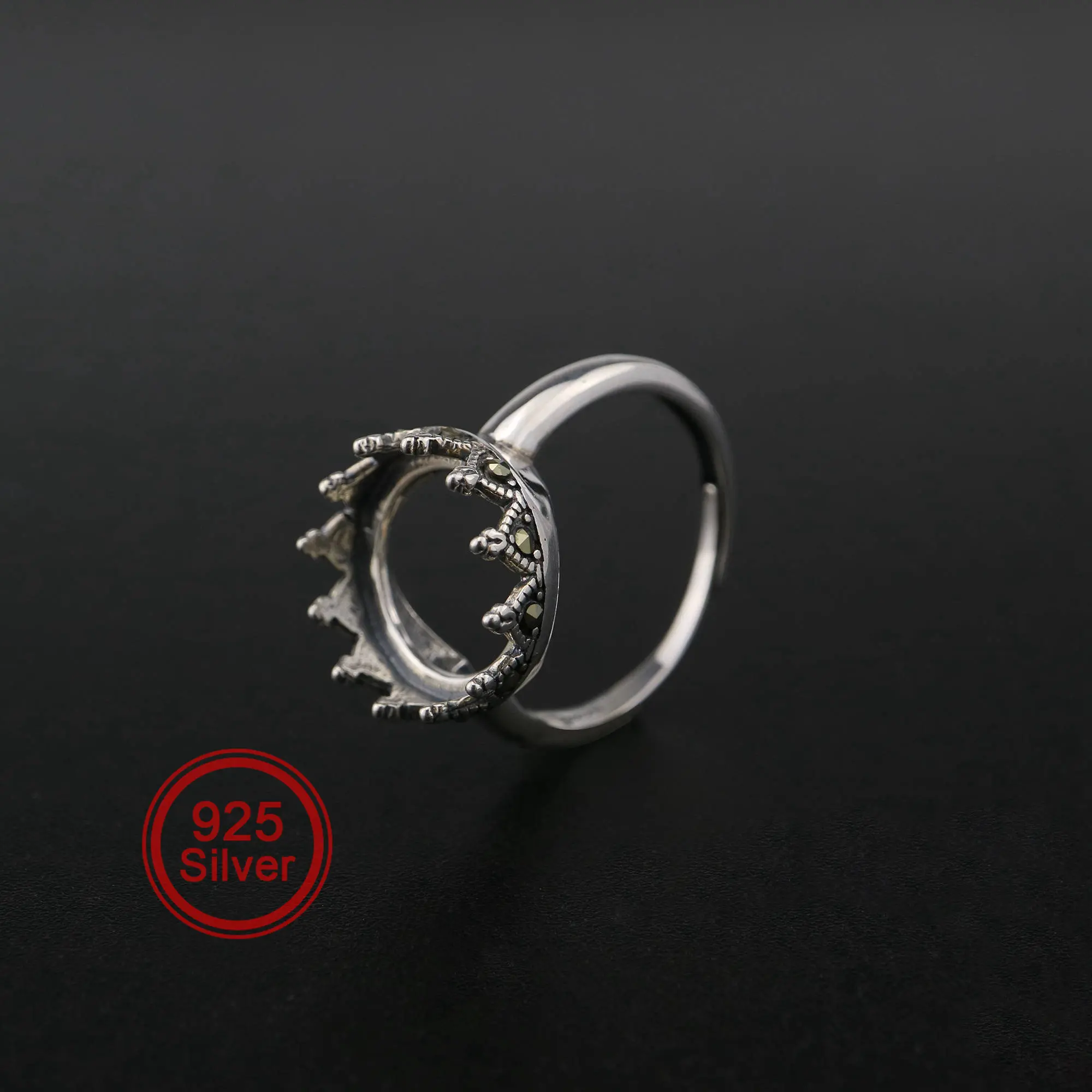 12 мм круглая корона, гнездо, твердый 925 пробы Серебряный антикварный стиль кольцо настройки кабошон «сделай сам» лоток ювелирные изделия 1213061