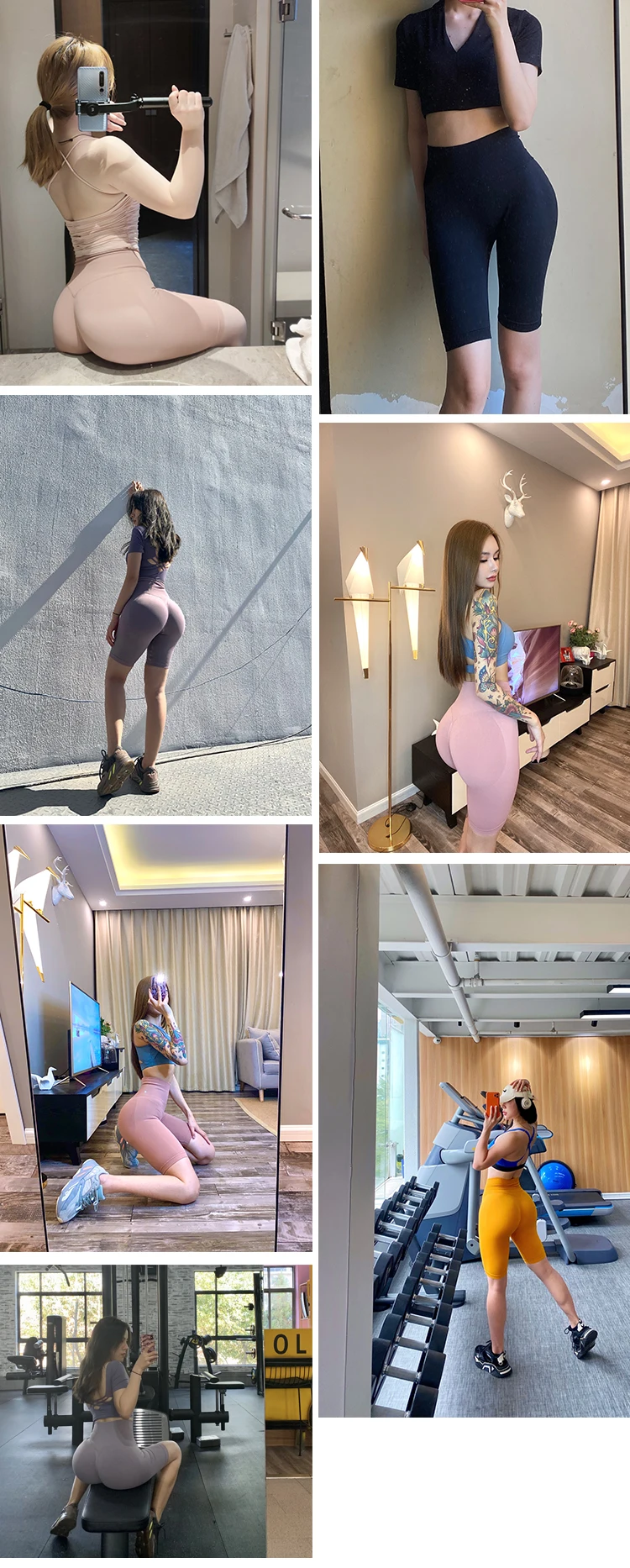 Облегающие Бесшовные штаны для йоги, высокоэластичные спортивные, фитнес-шорты Женщины, с завышенной талией, спортивные, Scrunch, идущие тренировочные леггинсы