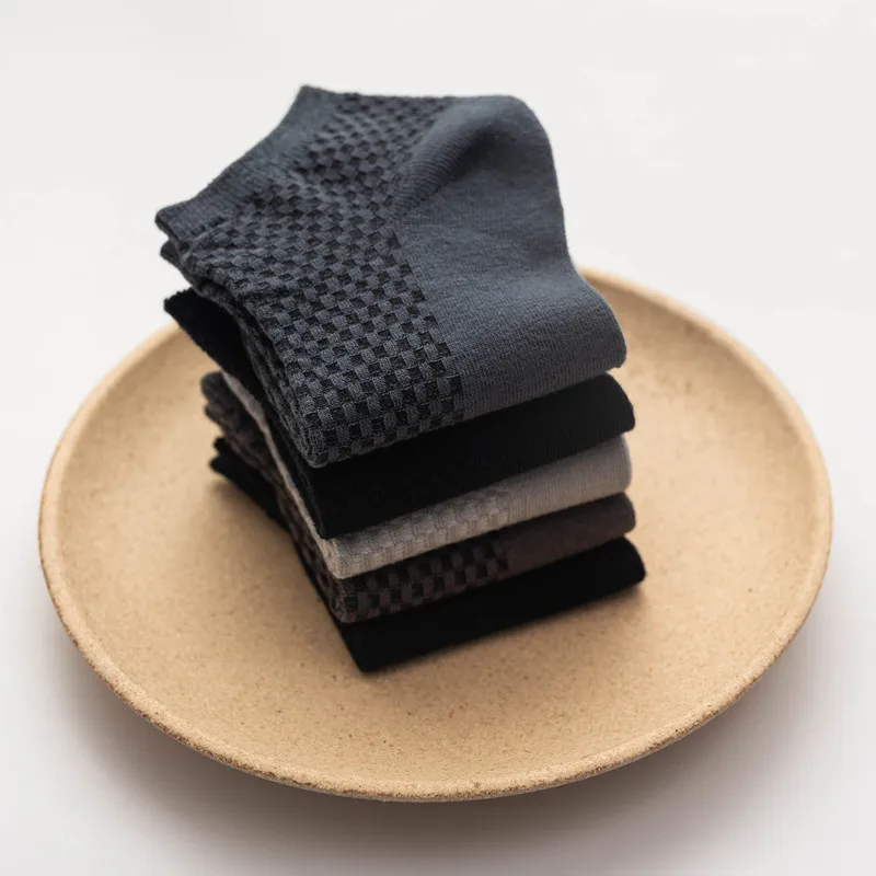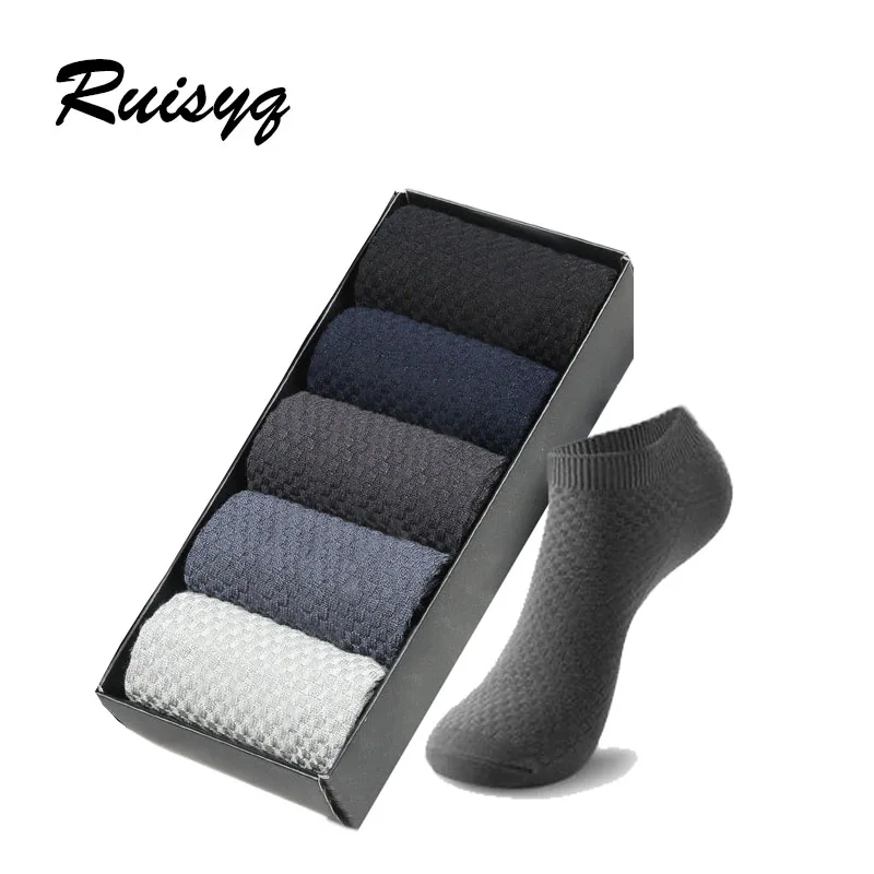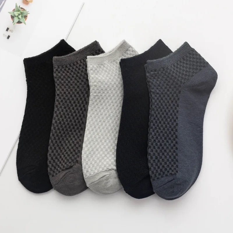 Носки мужские из бамбукового волокна, черные, дышащие, деловые, кожаные, для лета, 38-44, 5 пар, короткие носки до лодыжки