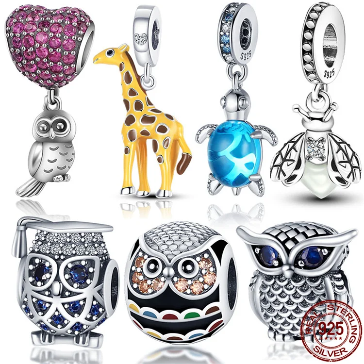 Новинка 925 г., циркониевые амулеты из серебра пробы с совой, для оригинальных браслетов 3 мм, для изготовления модных женских ювелирных изделий сделай сам