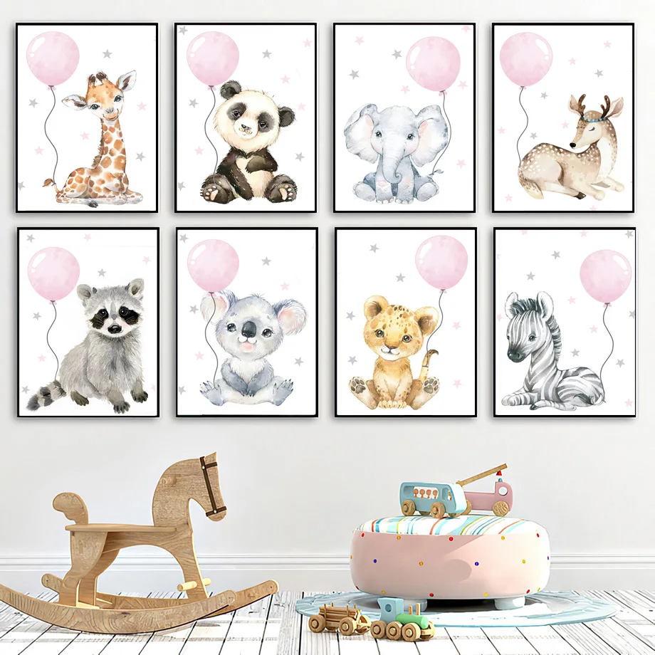 Детская Зебра слон Лев Олень коала воздушный шар облако Бохо настенное искусство холст живопись плакаты и принты настенные картины декор детской комнаты