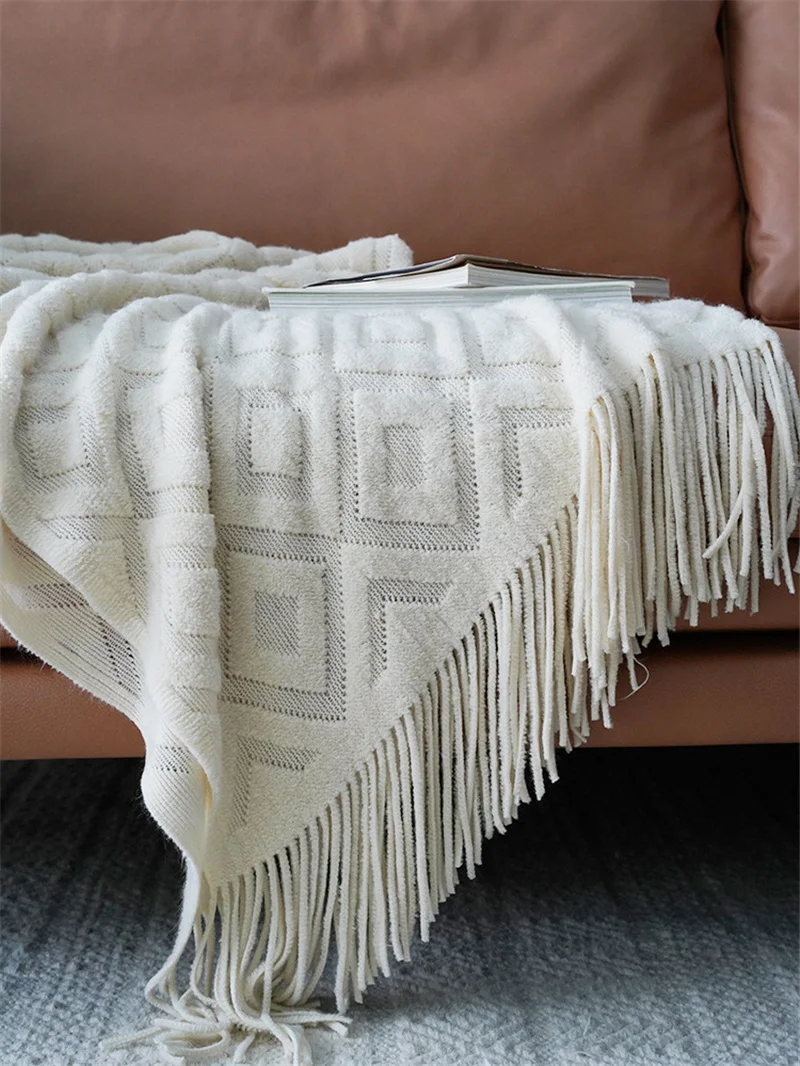 Текстильное кашемировое одеяло в форме алмаза для дивана, однотонно...