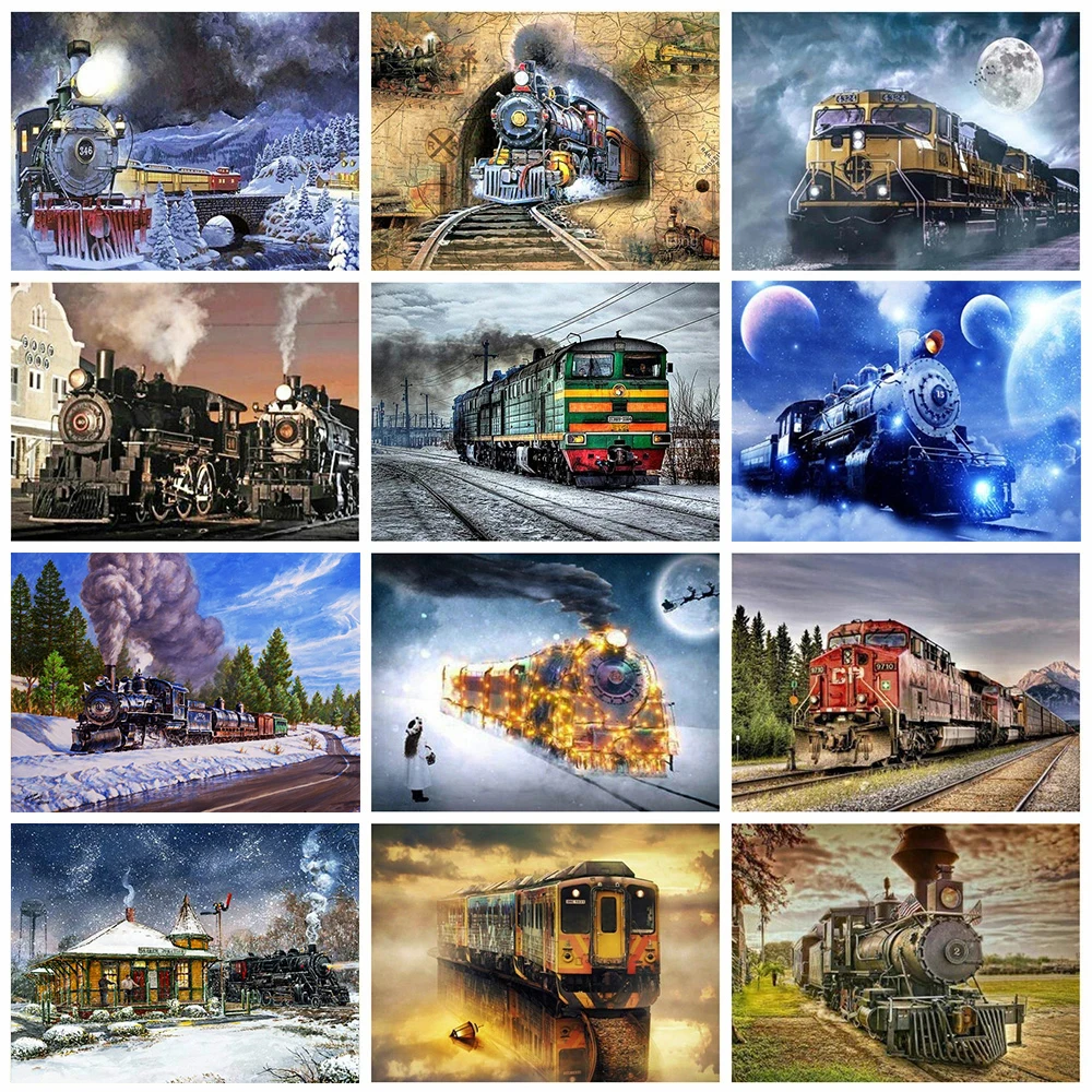 Камни в форме ромбакруглый 5D Diy Алмазная картина с изображением поезда пейзаж 3D Алмазная вышивка крестиком Стразы мозаичного искусства домашний декор