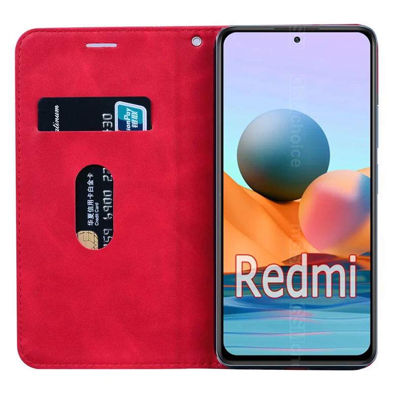 Чехол-бумажник для Xiaomi Redmi Note 10, кожаный чехол-книжка для R...