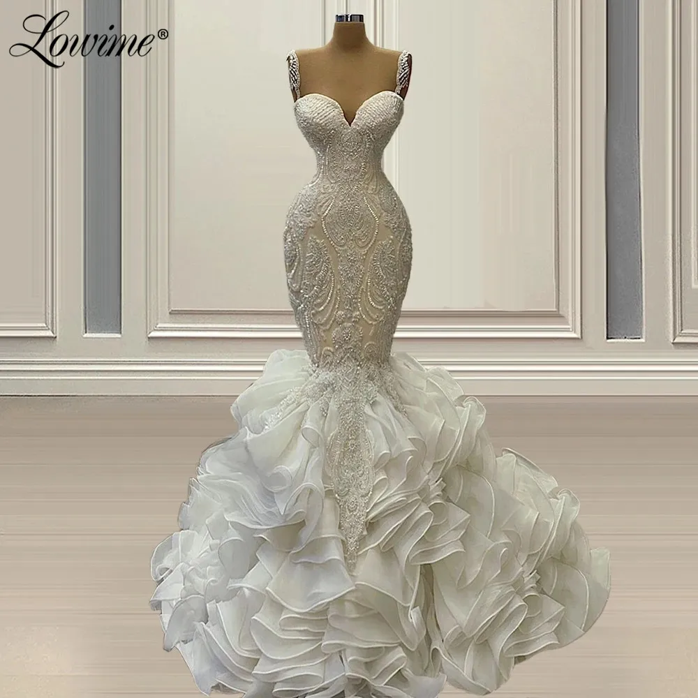 Lowime 2021 Couture бисером размера плюс Свадебные платья Русалочки Кристаллы Спагетти Длинные свадебные платья Robe De Mariage платья для матери невесты