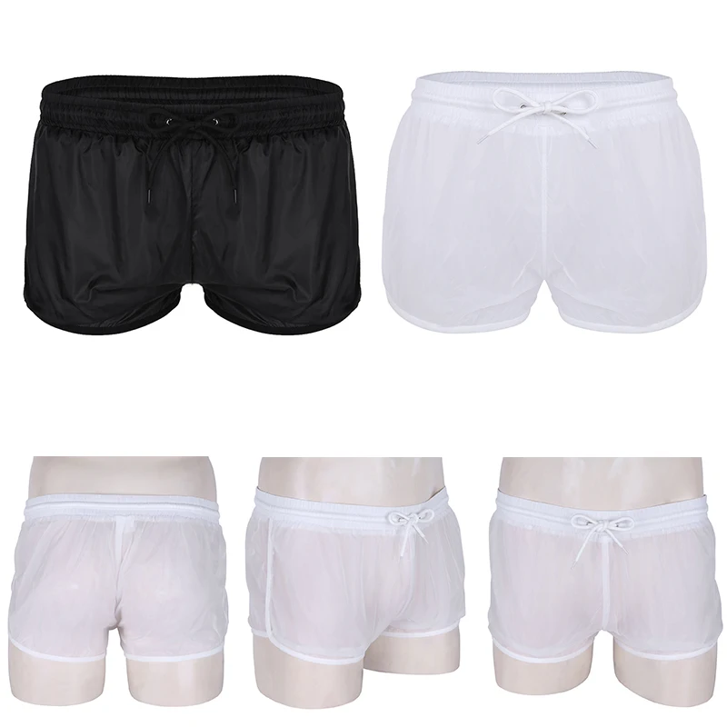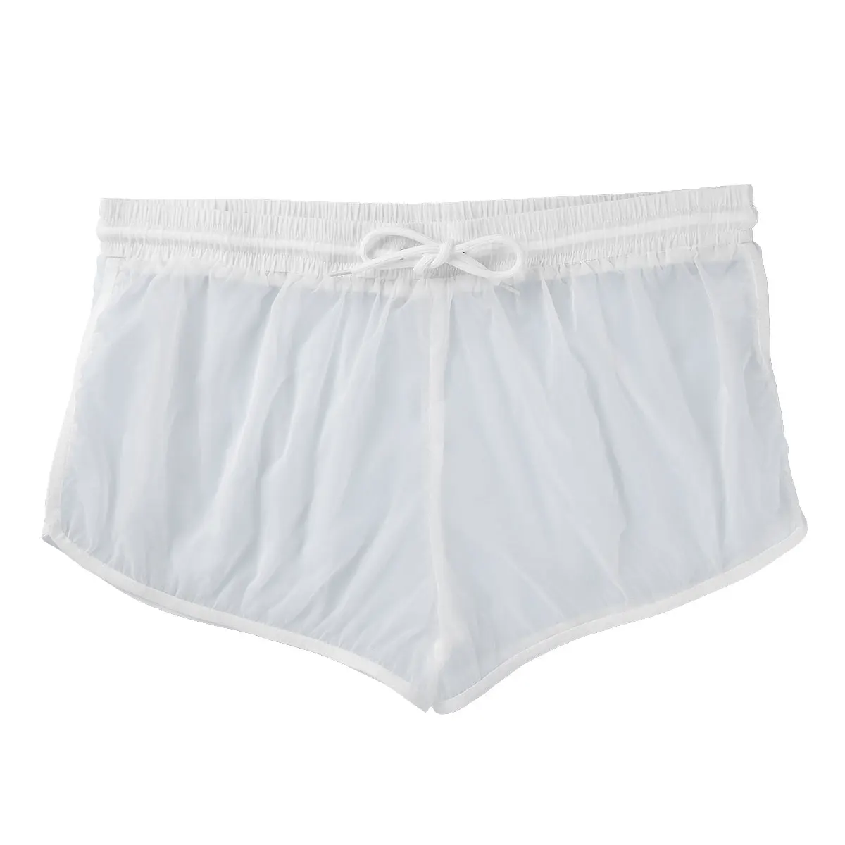 Мужские шорты для сна, пижамное нижнее белье, Легкие прозрачные плавки с кулиской для геев, бикини, боксеры, нижнее белье, повседневные шорты
