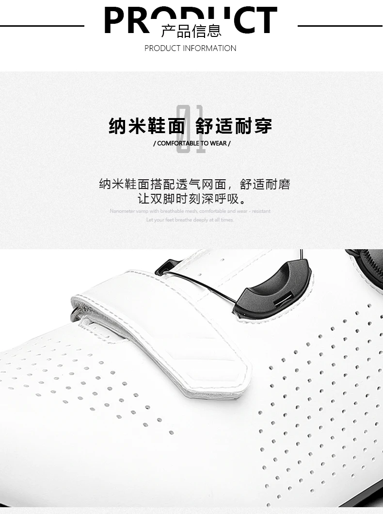 1. Верх из суперфибры Nano, более дышащий и не потеет, сохраняет ноги сухими и удобными.2. Перевязки на липучках прочны и удобны, удобен в регулировке, чтобы ноги оставались в лучшем состоянии.3. Конструкция отверстия обеспечивает максимальную выходную мощность в сочетании с ножной платой, минимальную потерю передачи, чтобы выходная мощность ног передавалась на плату.4. Используется днище из стекловолокна и нейлона, нескользящее и дорожное удержание.
