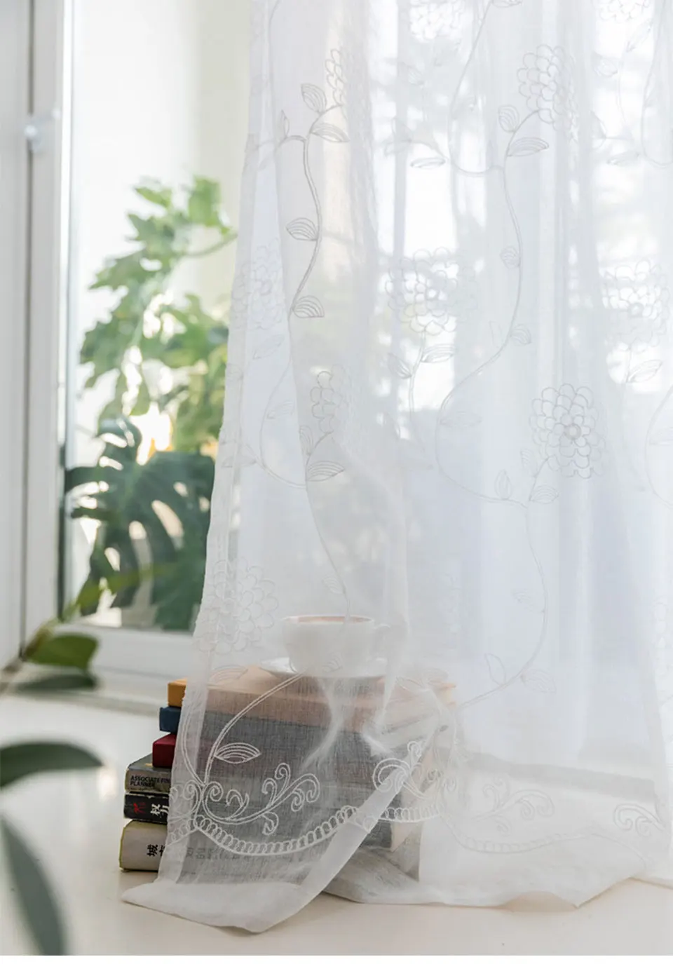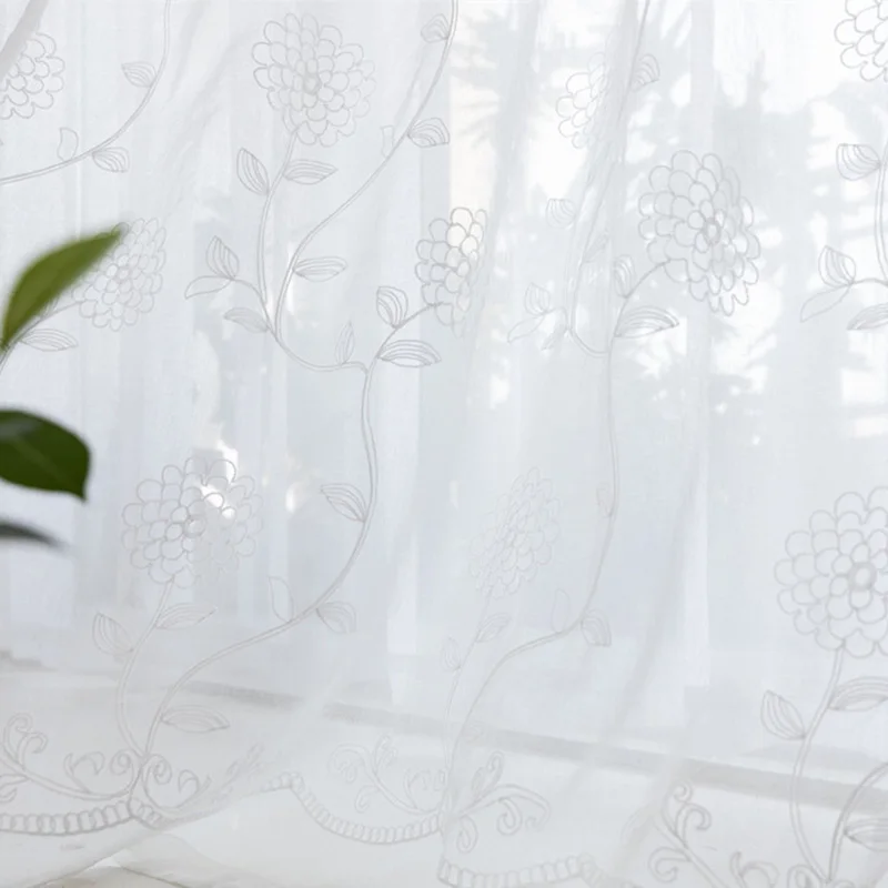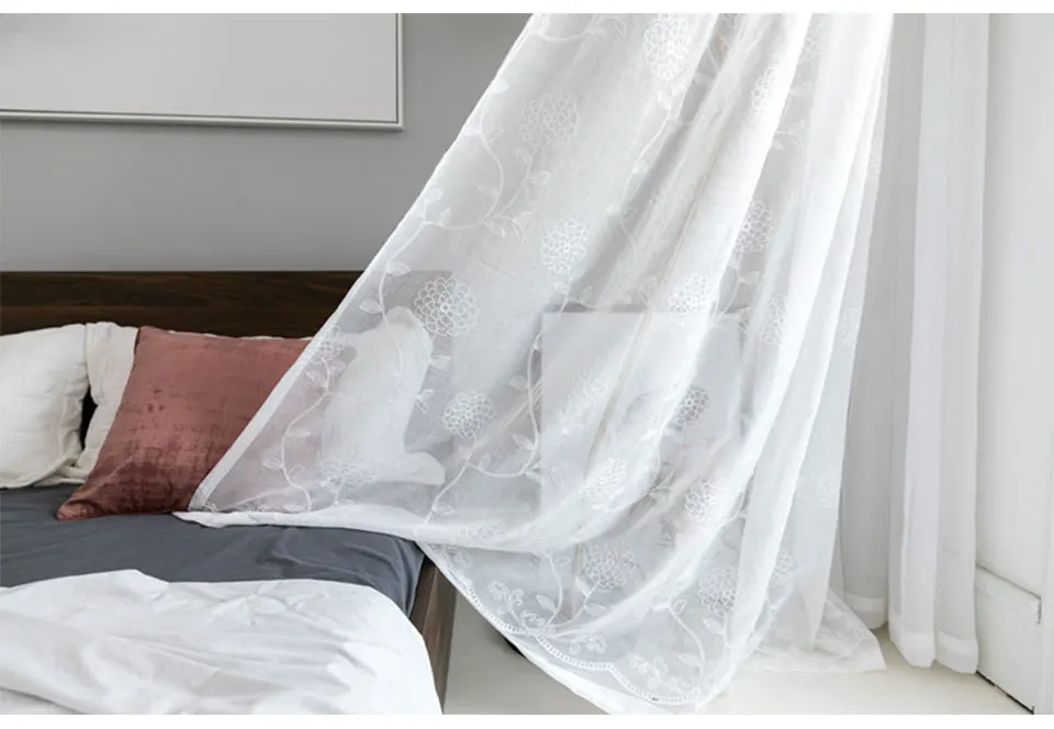 Современные белые занавески из вуали с вышивкой для спальни, тюлевые оконные занавески с цветочным принтом для гостиной, отвесные занавески s, занавески на заказ