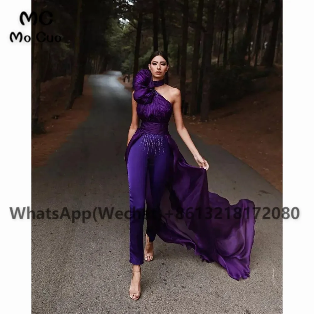 Комбинезон фиолетовое платье для выпускного вечера es Long 2021 вечернее платье с бантом и бисером на шее женское платье для выпускного вечера по индивидуальному заказу