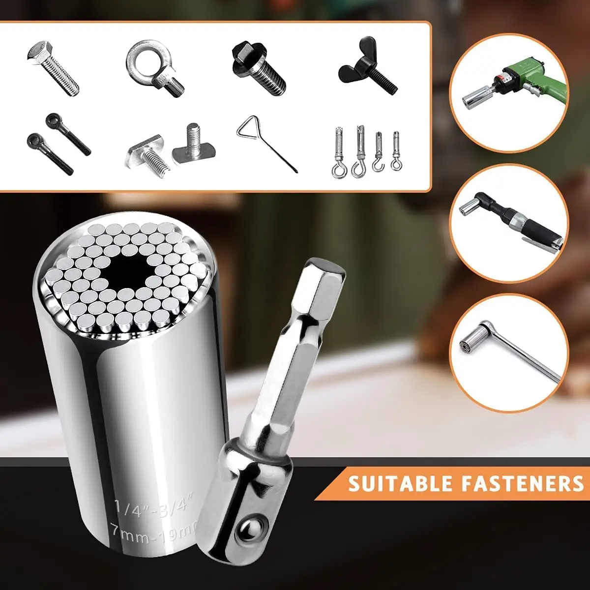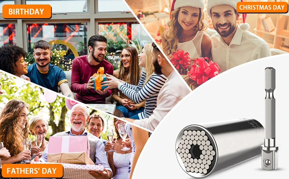 • 1. Идеальный подарок на Рождество, подарок на День Благодарения, подарок на день отца и другие праздники.• 2. Отличная идея подарка для папы, мамы, папы, мамы, друзей, ручной работы, парня, брата, мужчин или женщин.• 3. Идеально подходит для домашнего ремонта, строительства, столярных работ, ремонта автомобилей и другого домашнего обслуживания. Универсальная Розетка также пользуется популярностью у любителей дизайна «сделай сам».