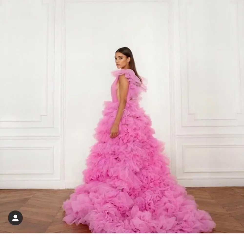 Шикарные новые фуксия фатиновые платья для выпускного вечера оборка...