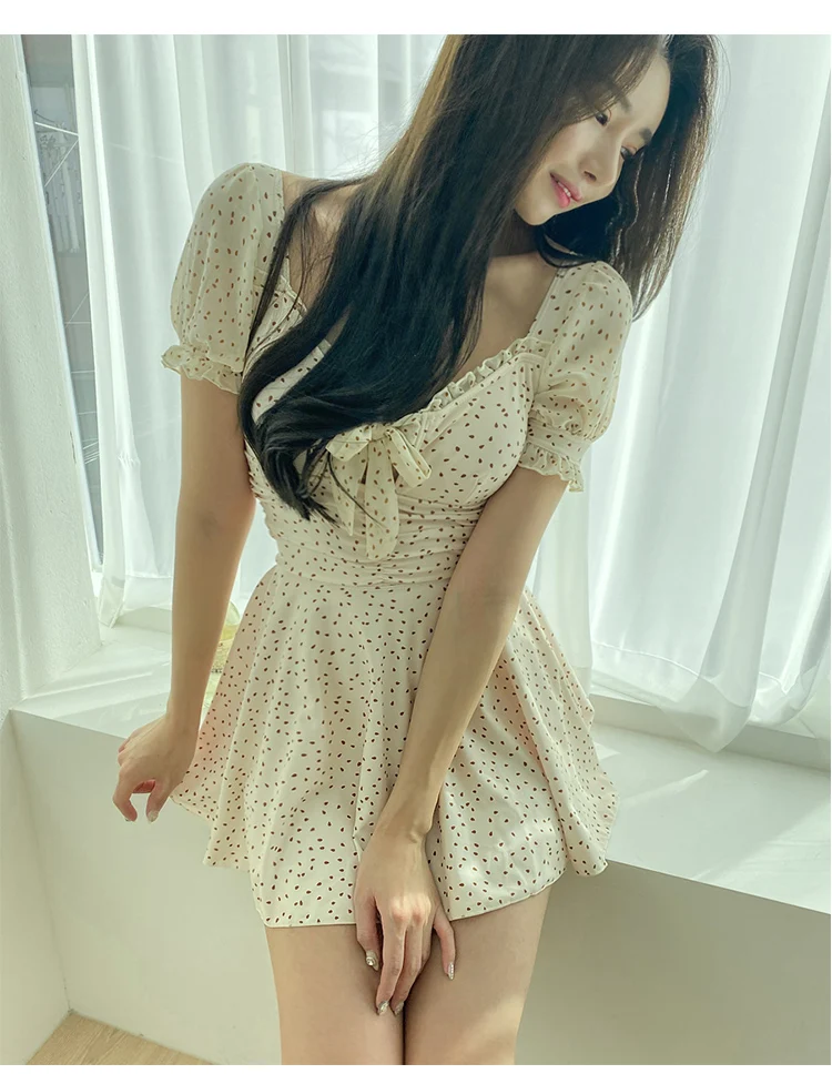 Новинка 2021, Женский цельный купальник, сексуальный купальник с коротким рукавом и юбкой, мягкое платье для плавечерние вечернее платье, женский купальник