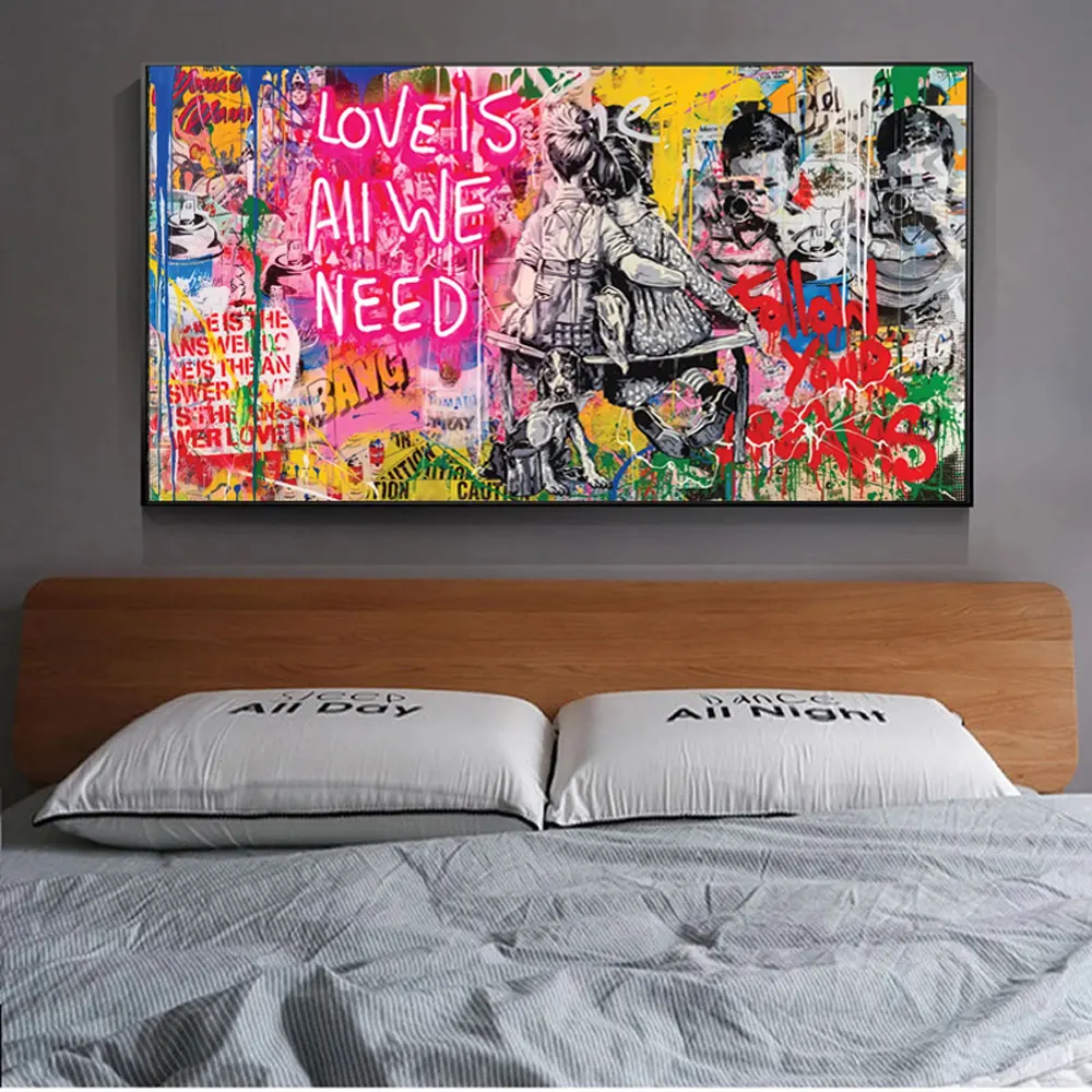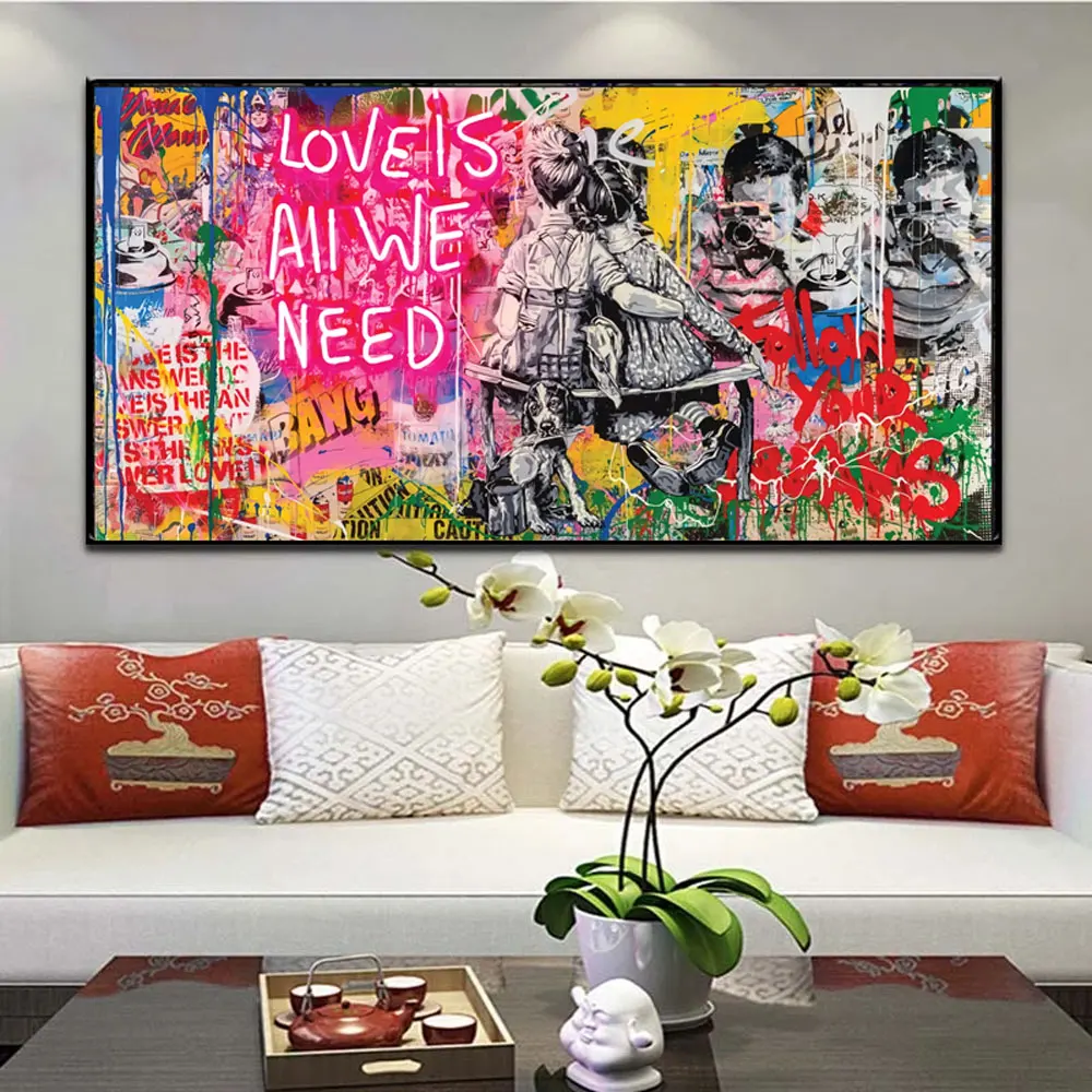 Искусство, любовь-это все, что нам нужно, брезент, фотообои, граффити, уличное искусство, Современное украшение для дома