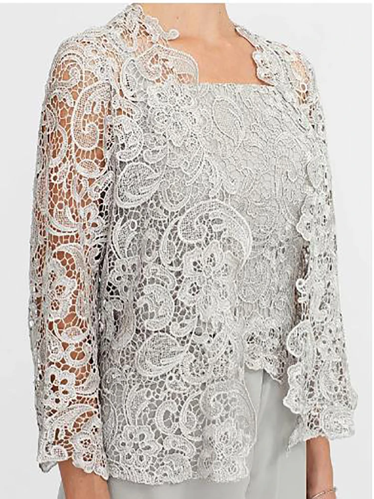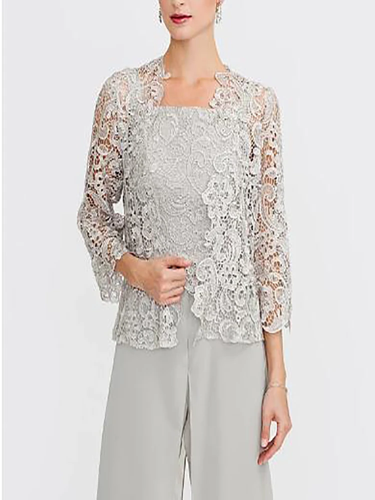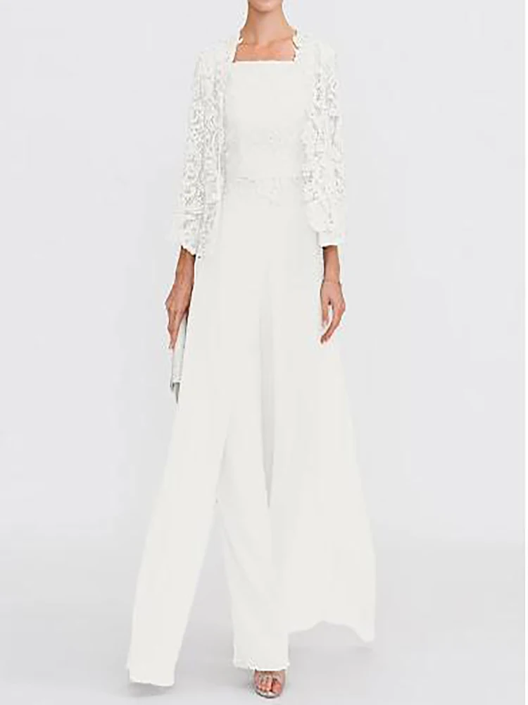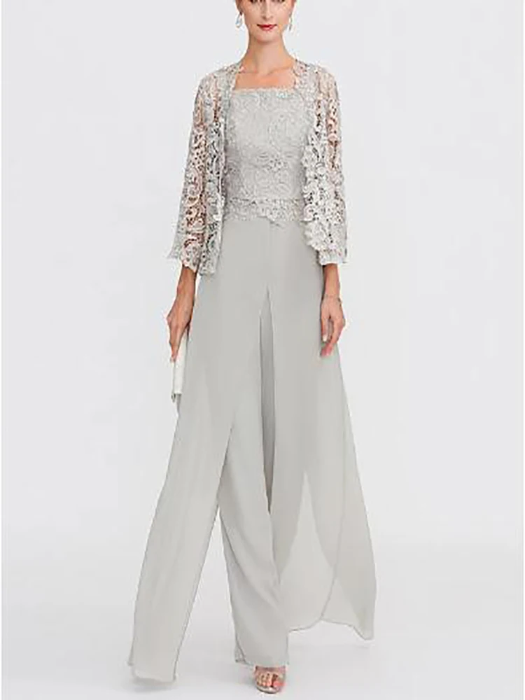 Брючный костюмкомбинезон для матери невесты женское платье Элегантная шифоновая Кружевная аппликация в пол с квадратным вырезом 2022