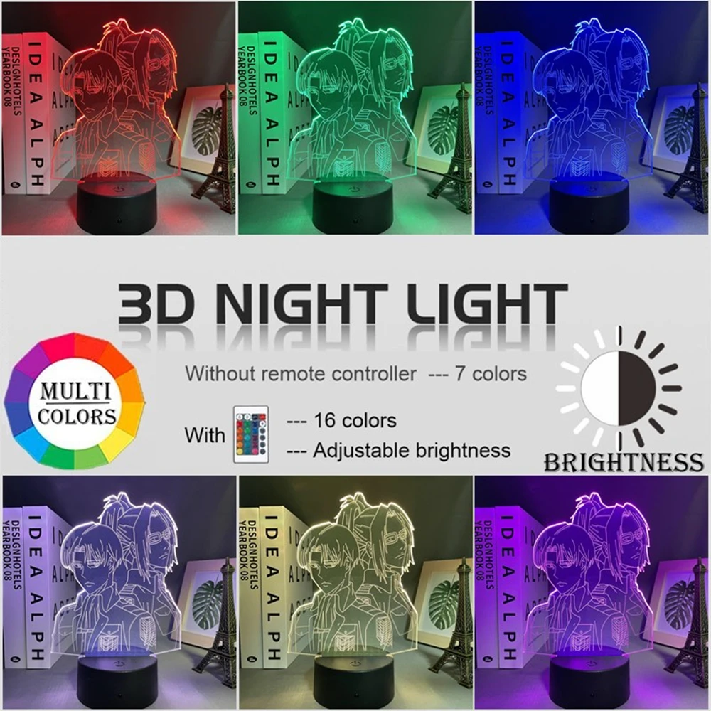 Акриловая 3d лампа атака на Титанов Levi Ackerman, домашний декоративный светильник для комнаты Hange Zoe, светодиодный ночсветильник в стиле аниме, подарок для детей
