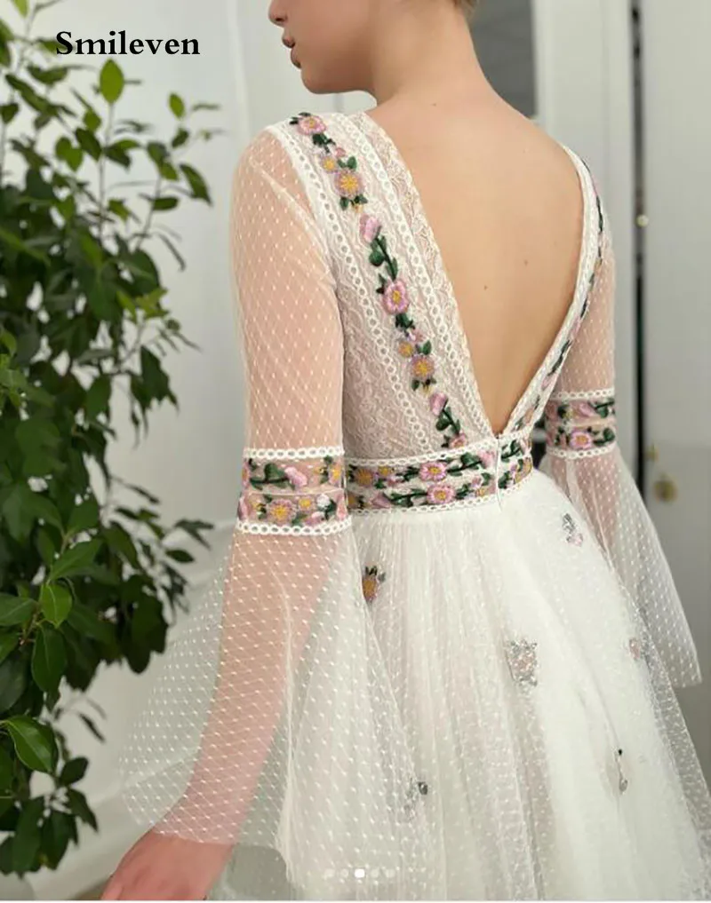 Платье свадебное с V-образным вырезом, полурукавами и 3D цветами