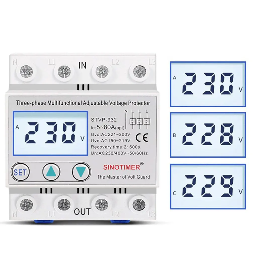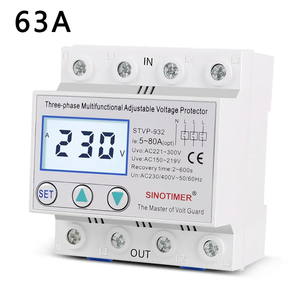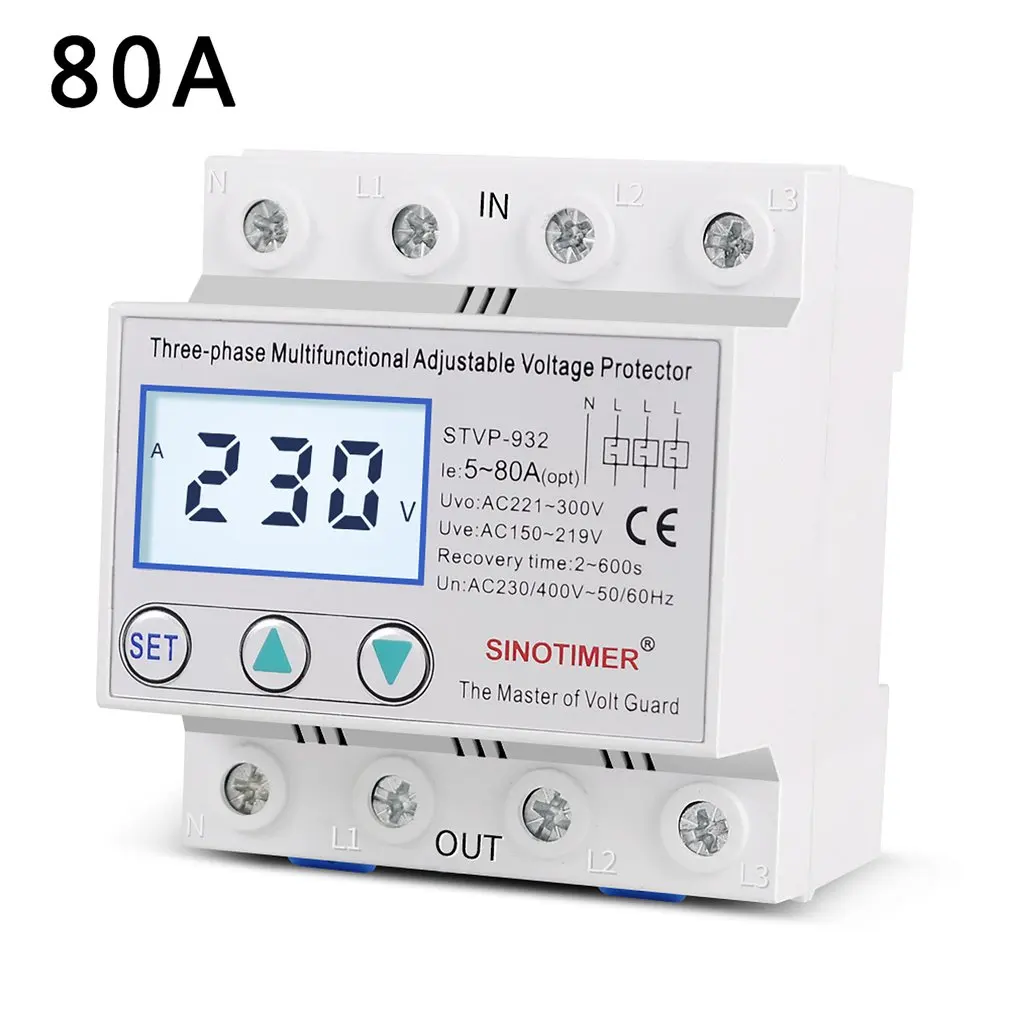 3. STVP серии SINOTIMER бренд автоматическая защита от перенапряжения и пониженного напряжения протекторы подходят для трёхфазного переменного тока 380 В пер. тока, 50/60 Гц.