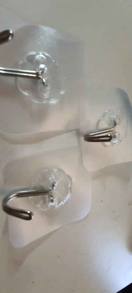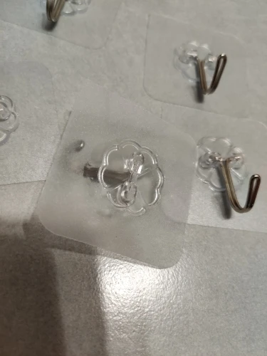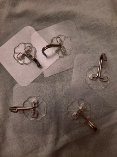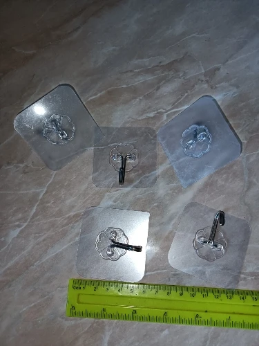Хоть и выглядят не элитно, крючки имеют функционально удачное решение. Большая площадь контакта со стеной и центральное, очень близкое расположение опоры крючка к этой стене, дают отличные показатели выдерживания нагрузки. На узкий носик крючка легко вешать плотные вещи и они не спадают впоследствии. Крючки не отваливаются под нагрузкой при высокой влажности и температуре во время вашего принятия душа. Теперь к минусам - литьё барельефа не всегда качественное (видно на фото, 1 штука отличается). Не абсолютно прозрачная база, отдаёт синим цветом. Да и сам цвет может отличаться у разных крючков. Но в общем и целом - заменил свои старые самоклеющиеся крючки, которые падали во время принятия душа, надоели. Эти держат нормально.