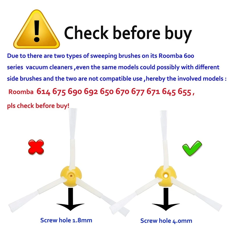 Частичная iRobot Roomba 675 670 671 677 675 690 692 650 655 имеет две конфигурации щетки для подметания, пожалуйста, нажмите на картинку №2 по ссылке, чтобы проверить перед заказомВсе продукты производятся из высококачественных материалов для защиты окружающей среды.Лучше заменить запасные части на 1-3 месяца, чтобы ваш пылесос был в лучшем рабочем состоянии, мы предоставляем инструкции по установке и с помощью наших бесплатных инструментов, запасные аксессуары могут стать быстрыми, простыми И гигиеничными.Совместимость с: для iRobot Roomba 536, 551, 552, 564, 585, 589, 595, 618, 620, 650, 651, 660, 680, 690, (Внимание: не совместим с 645 655) Роботизированный очистительЦвет: красный + черныйМатериал: пластикПосылка:6 * Основные кисти6 * экраны фильтров8 * Боковые кисти1 * колесо1 * Черная отвертка1 * Чистящая Щетка1 * Круглый инструмент1 * плоский инструментТолько вышеуказанная посылка, другие товары не включены.Примечание: светильник и различные дисплеи могут привести к тому, что цвет товара на картинке немного отличается от реального. Допускается погрешность в измерениях +/- 1-3 см.