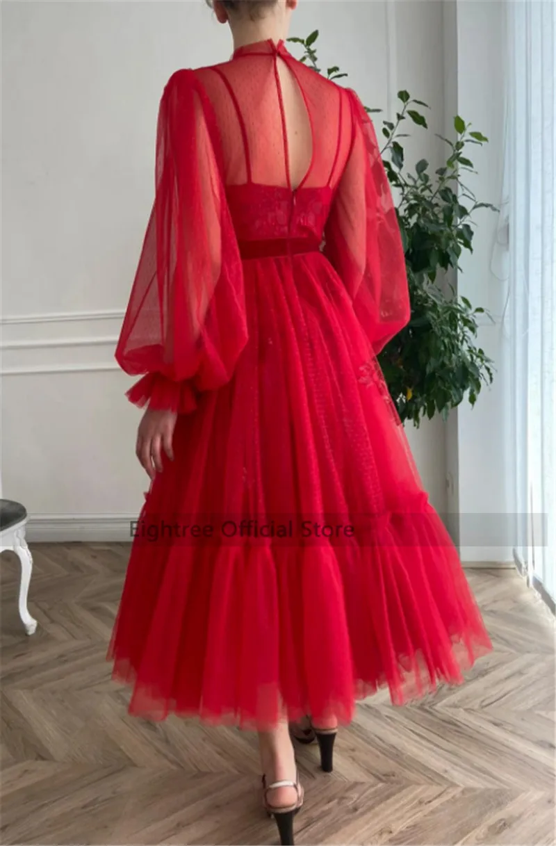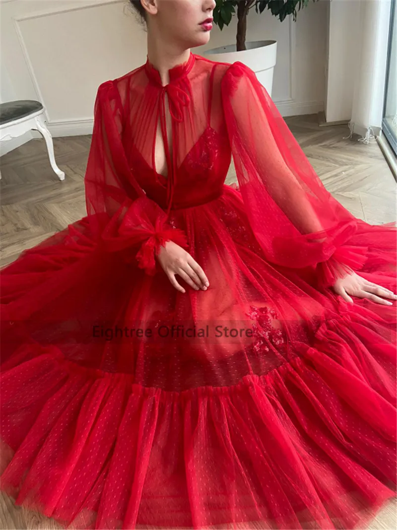 Винтажное красное свадебное платье Eight Tree, короткие кружевные свадебные платья длиной ниже колена, свадебные платья с пышными длинными рукавами, Турция, Vestido de Noiva