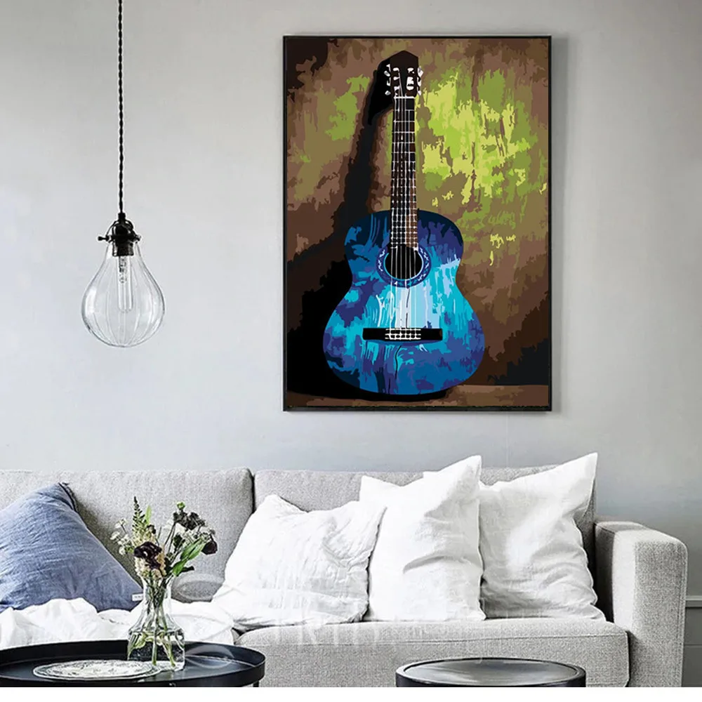 Картина AZQSD по номерам, синяя гитара, рисование на холсте, самостоятельная роспись по номеру для взрослых, набор инструментов, современное настенное искусство