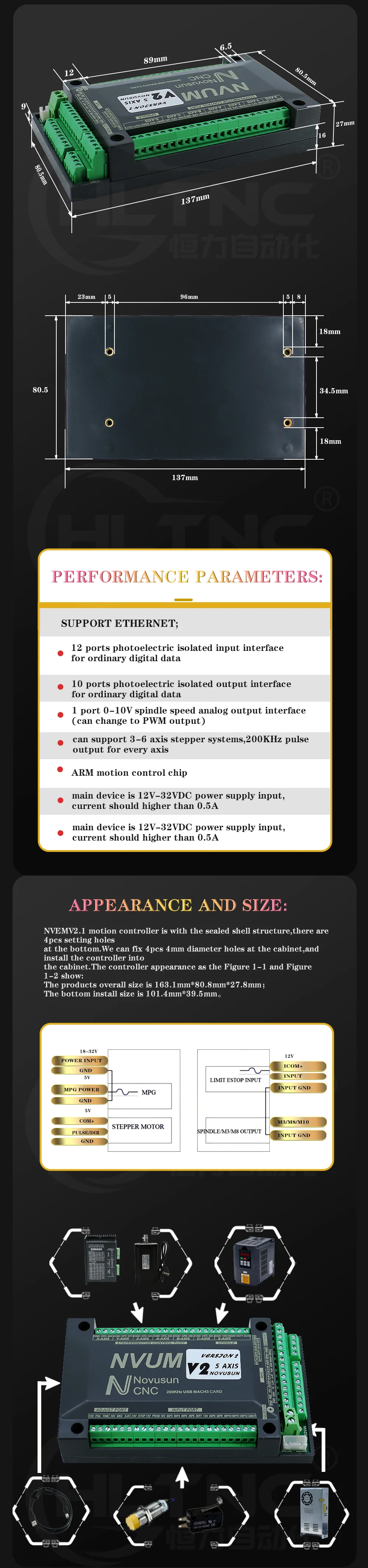 NVUM3/4/5/6-1Ethernet interface 3 axis 6 axis motion controller