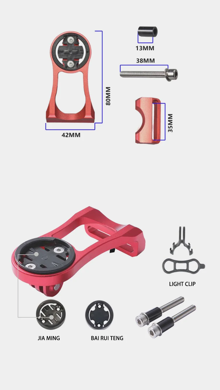 Шикарное крепление для велокомпьютера и фонаря или экшнкамеры. Качественно сделано, в комплекте ключи и все болты. Рекомендую