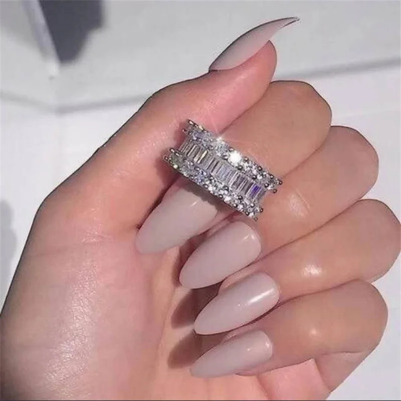 Романтическое женское кольцо с белым кристаллом ААА, изысканное Свадебное обручальное кольцо, Женские Ювелирные изделия, ручные аксессуары