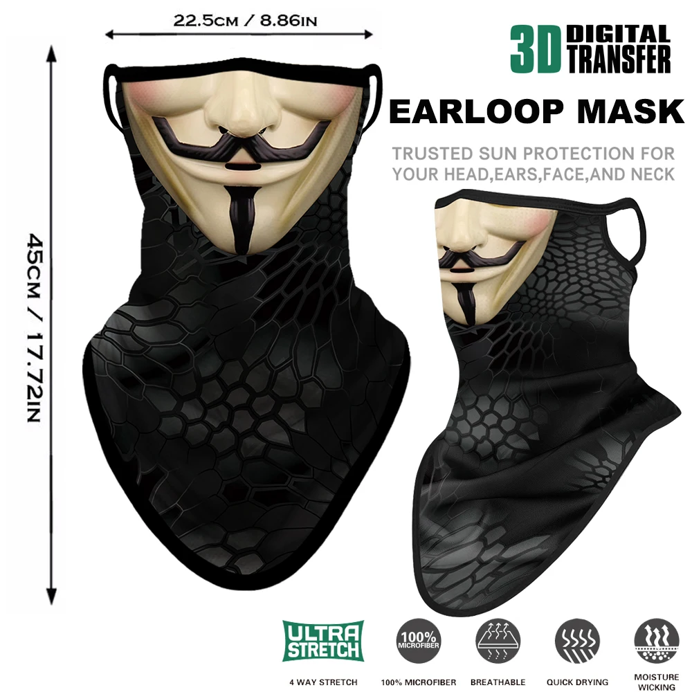 Анонимная Балаклава, бандана, шарф, ушные петли, маска для лица, V-образный ободок, головной платок, шейный платок, маска для лица для женщин и мужчин