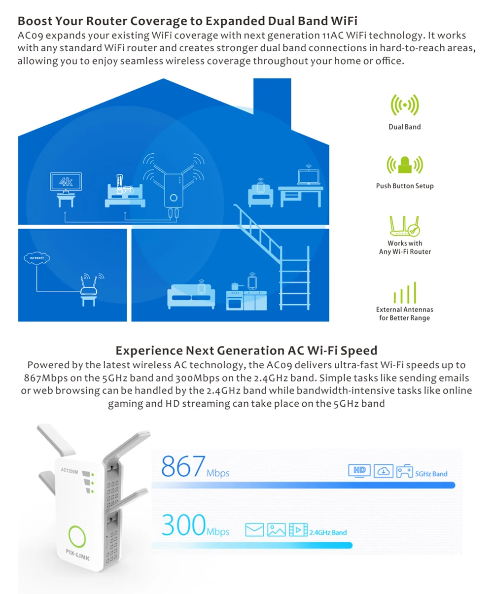 Ретранслятор PIXLINKAP беспроводной усилитель диапазона 1200Mbps Wi...