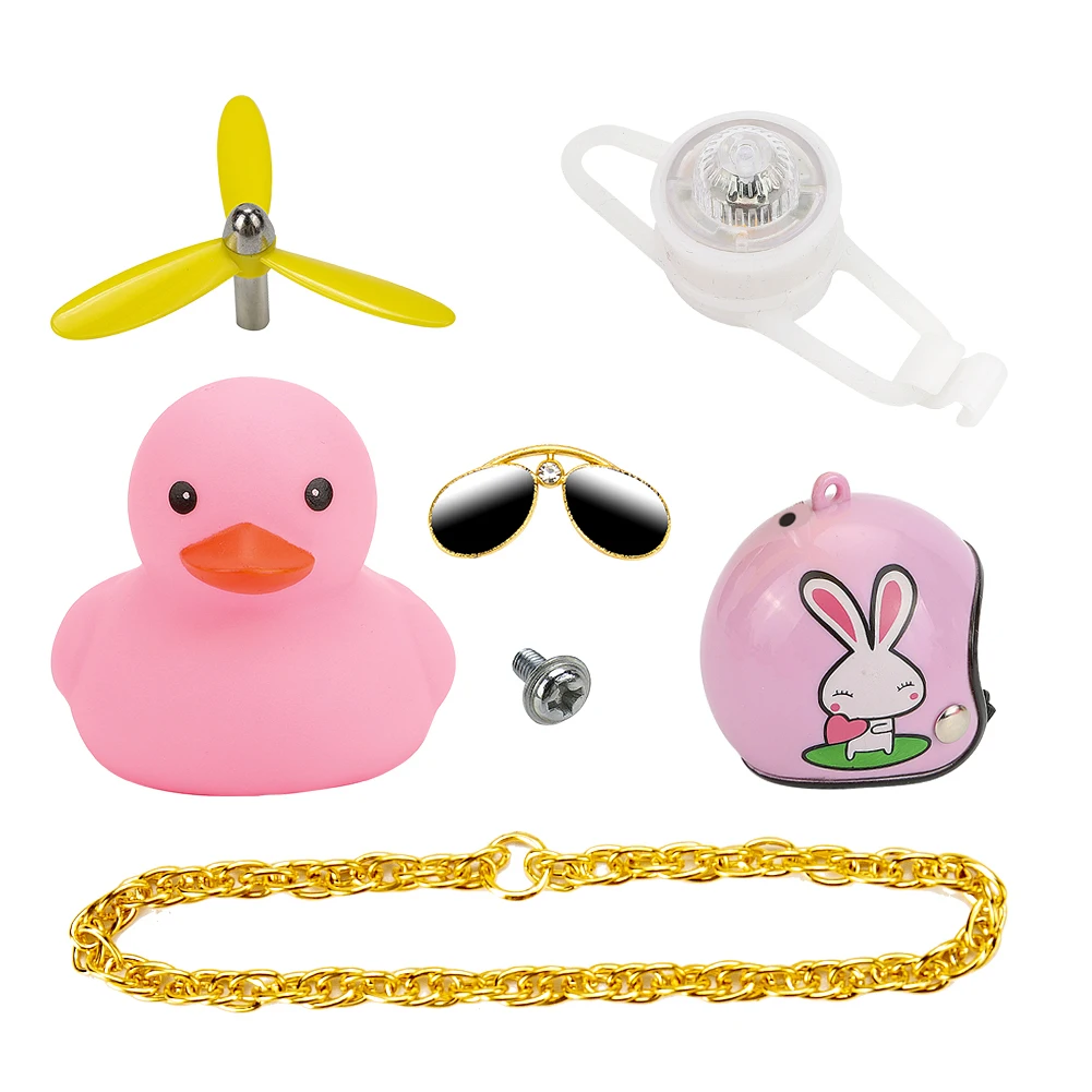 Детали посылка1 шт х розовая утка1 шт. х шлем1 шт. х воздушный винтСолнцезащитные очки-1 шт.1 шт х цепь1 наклейка1 шт. х Легкий ремешок