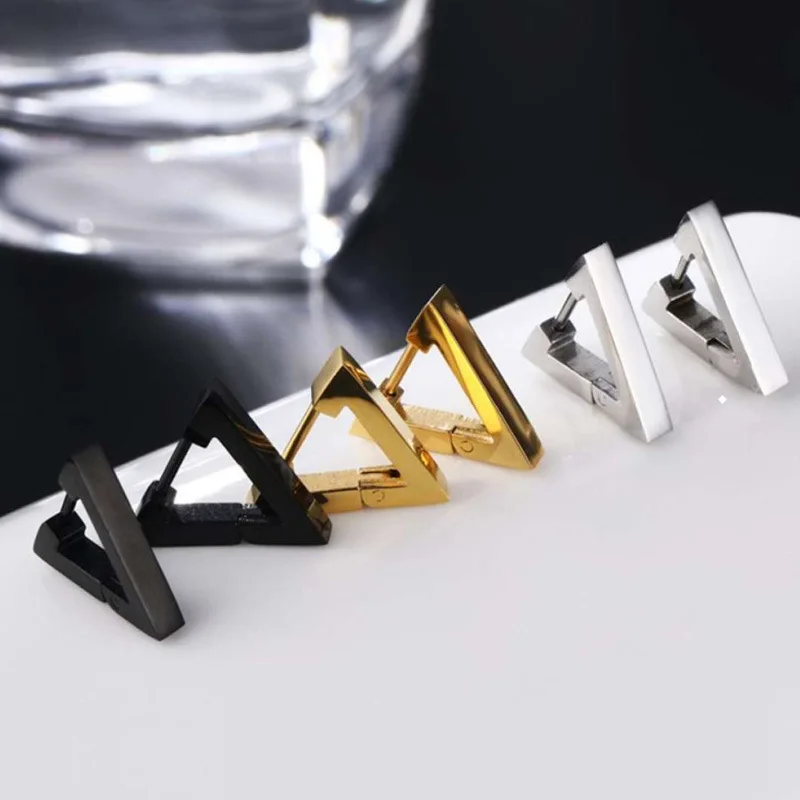 Rinhoo простые геометрические Треугольники серьги-гвоздики в стиле унисекс Нержавеющаясталь панк рок-жеребец серьги пирсинг пружинный зажим, фиксирующий штифт вечерние ювелирные изделия